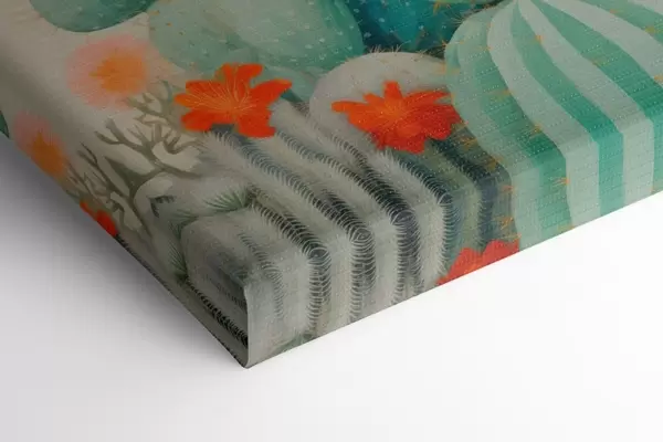 Schilderij Cactussen met grote bloemen, een pastelkleurenpalet en een gevoel van rust Art. m01086