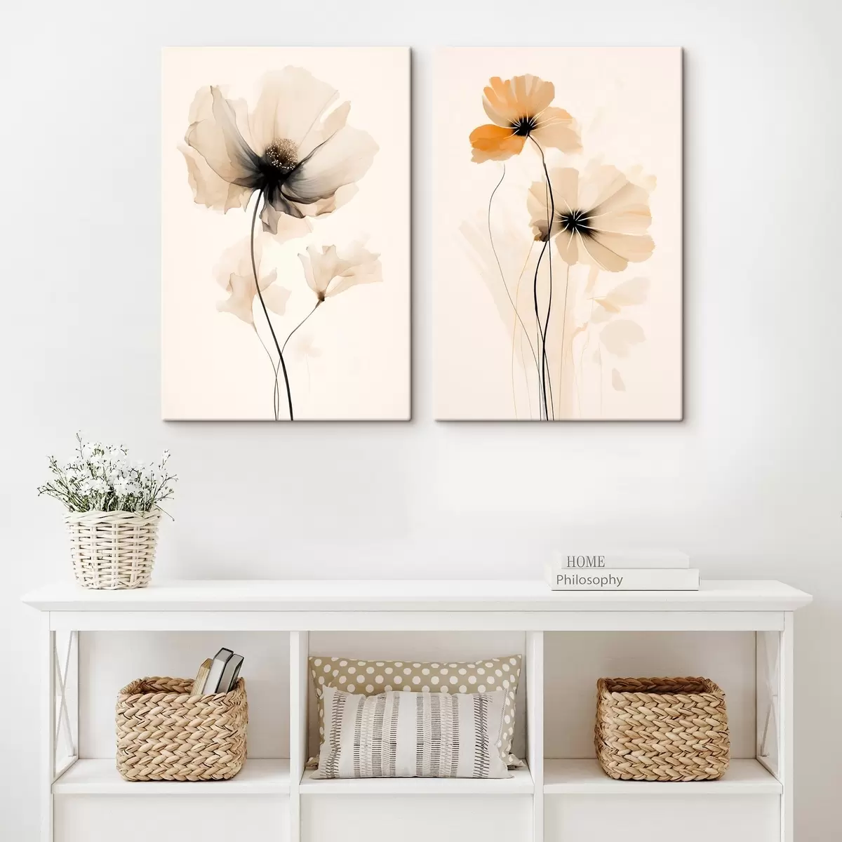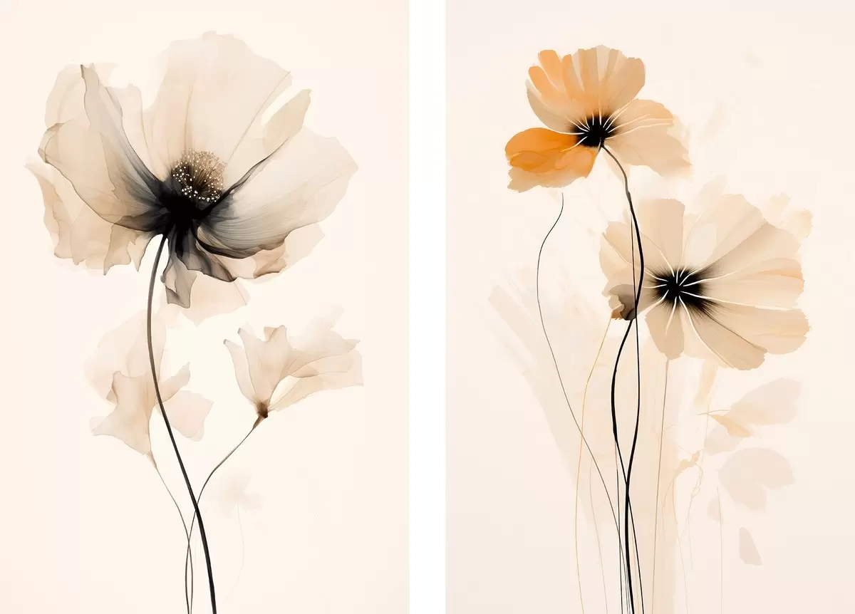 Schilderij Lichte aquarelpapavers met zachte schaduwen en luchtige ruimte Art. m01091
