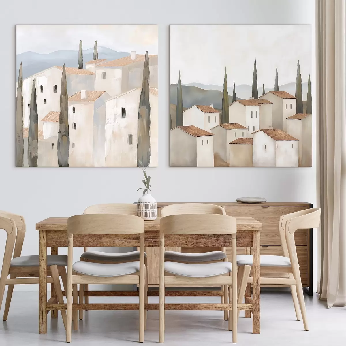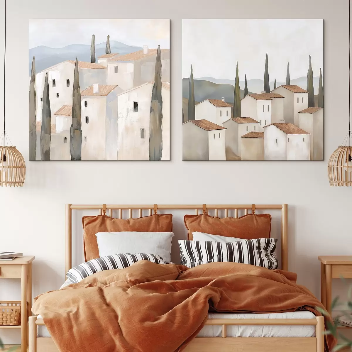 Je kunt het schilderij ophangen aan schroeven. Hiervoor leveren we bevestigingen bij onze foto's, zodat je de foto gemakkelijk kunt ophangen.