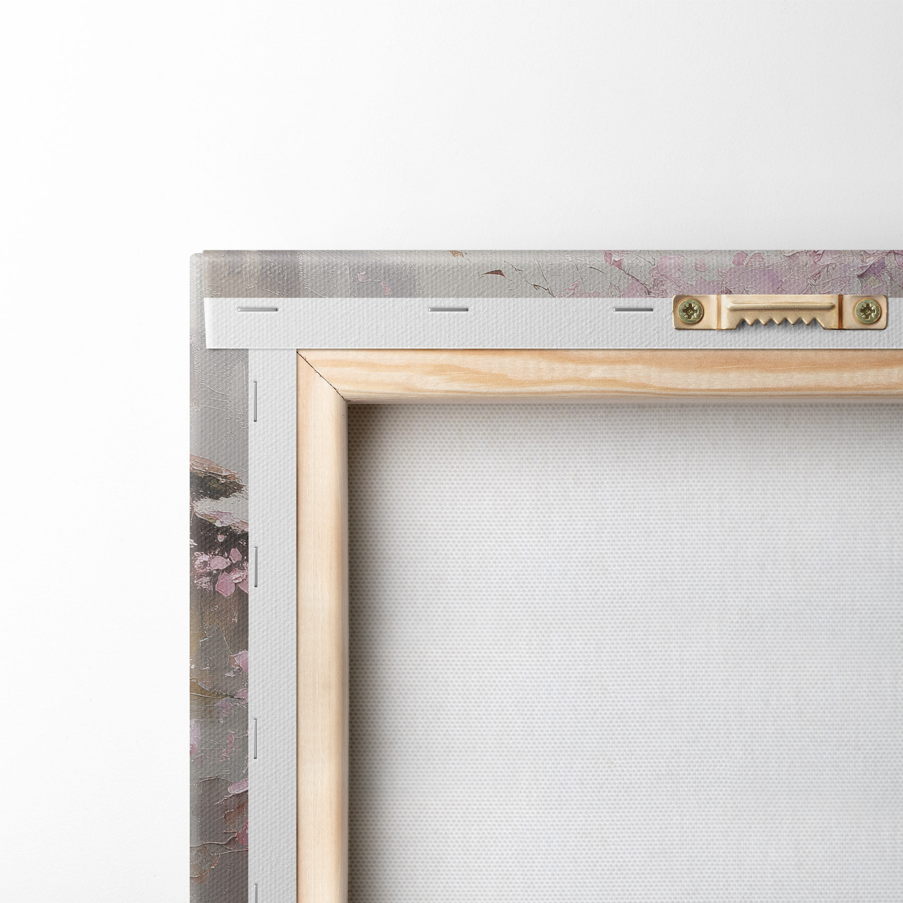 Om het doek op te spannen op spielatten zonder de afbeelding te beschadigen, gebruiken we gespiegeld beeld.
