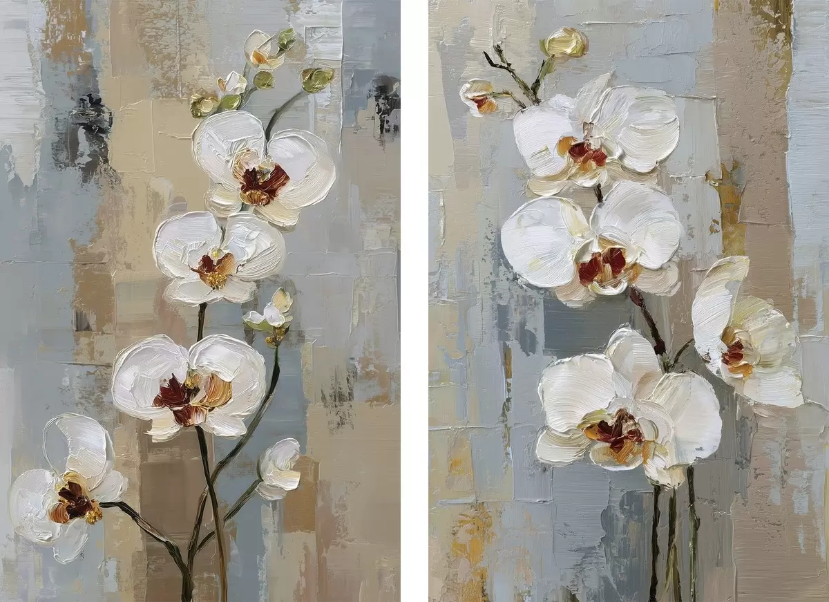 Schilderij witte orchideebloemen in de stijl van een olieverfschilderij Art. m01175