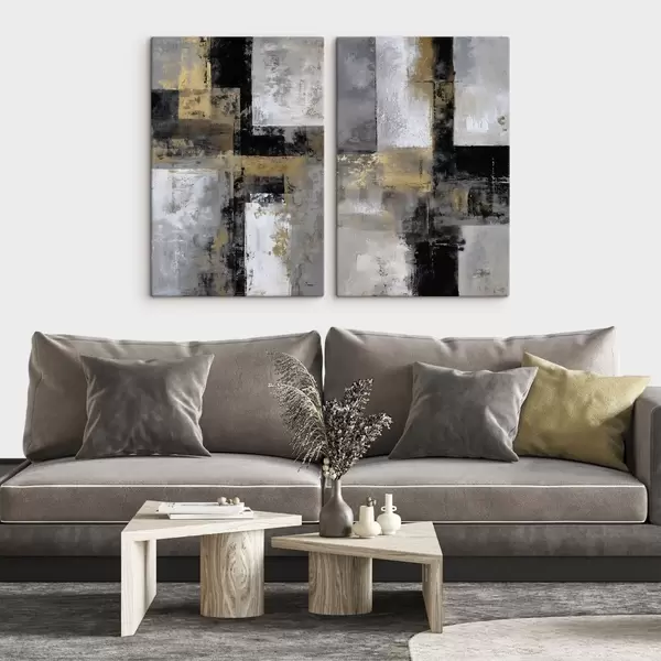 Schilderijen hedendaagse textuurabstractie in zwart-, grijs- en wittinten m01179