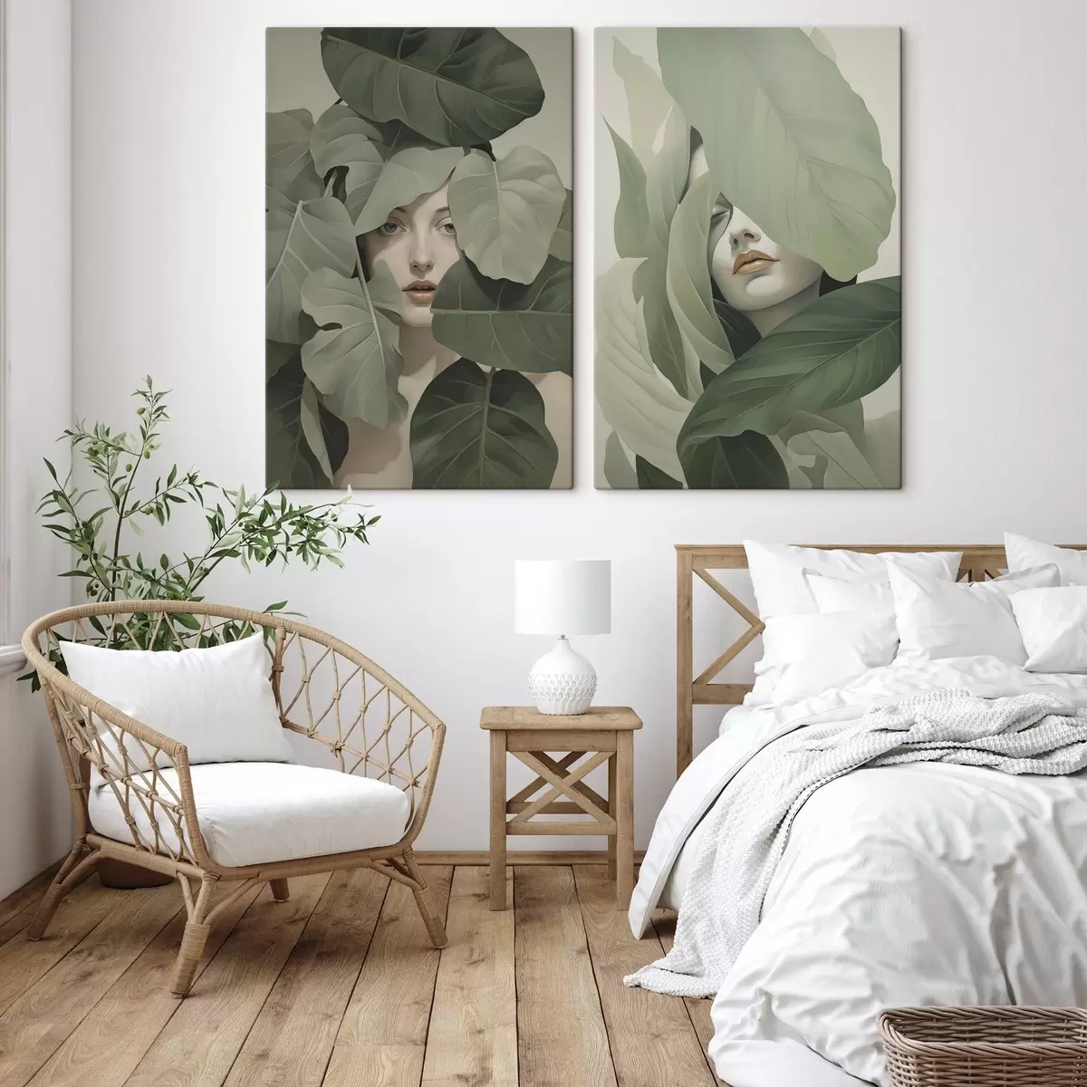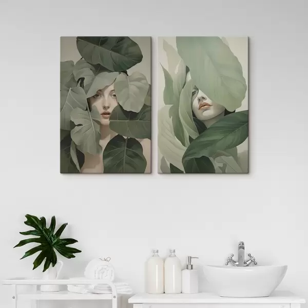 Schilderijen Portret van een meisje in gebladerte m01183