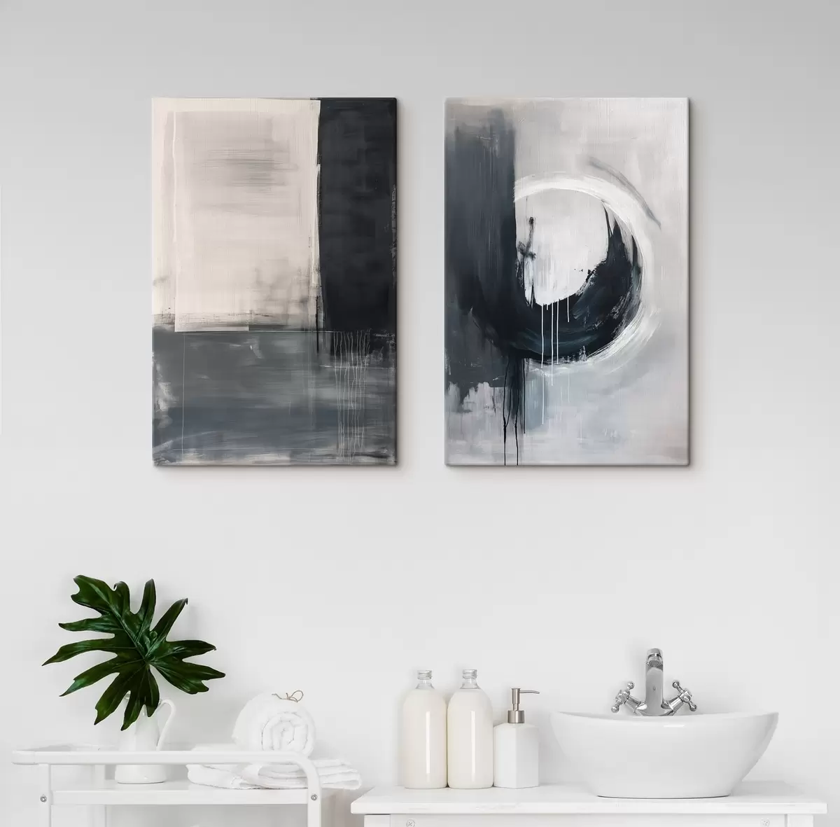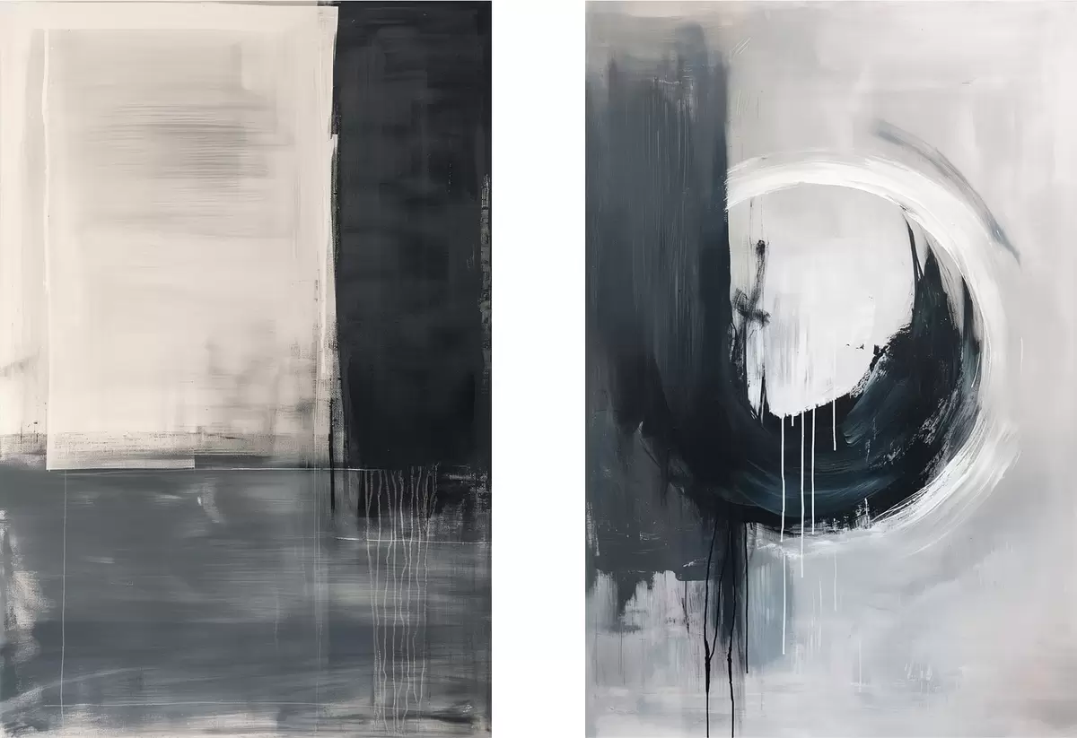 Schilderijen Abstracte compositie in zwart-wittinten m01217