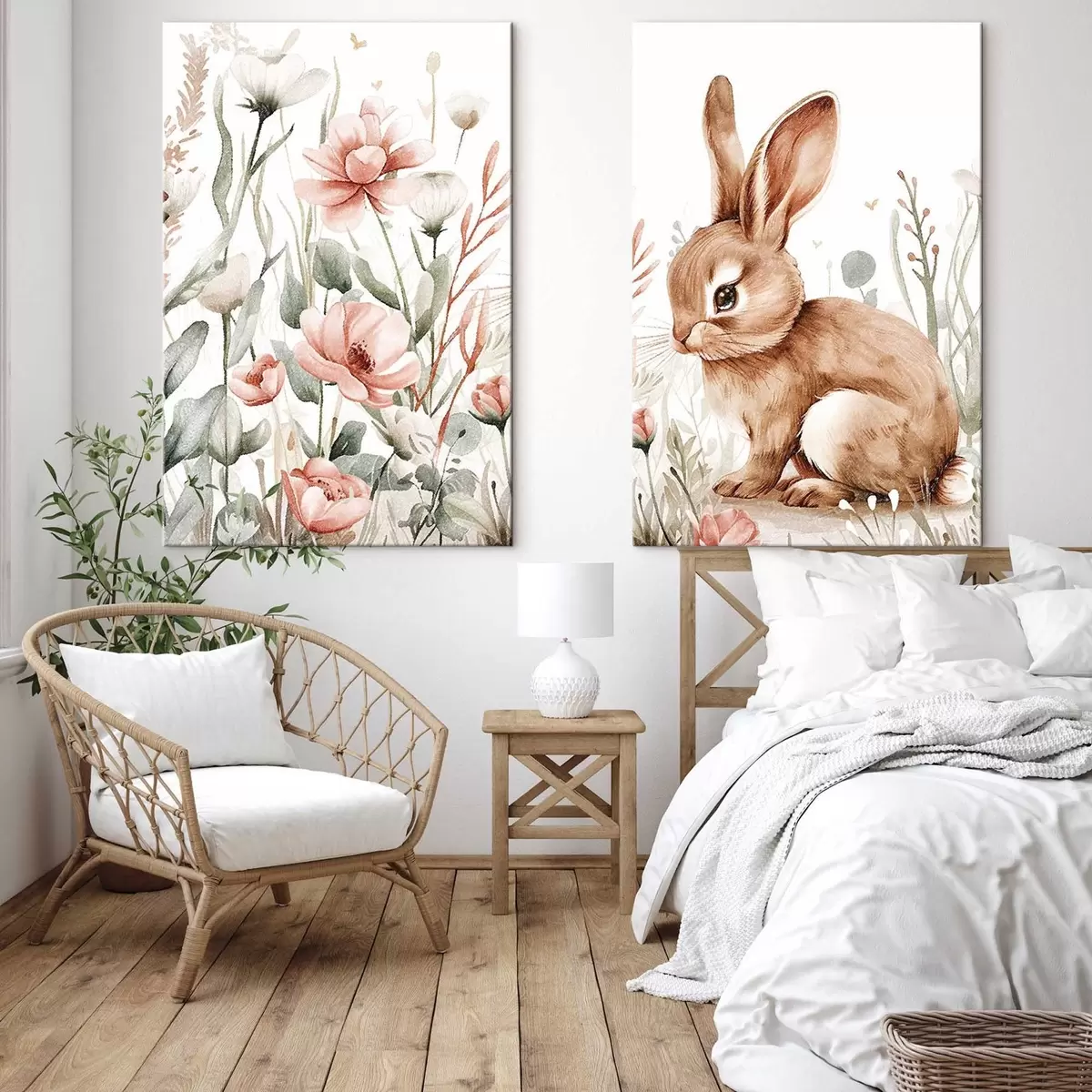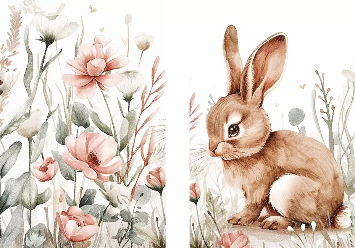 Schilderijen Hazen in bloemencompositie m01299