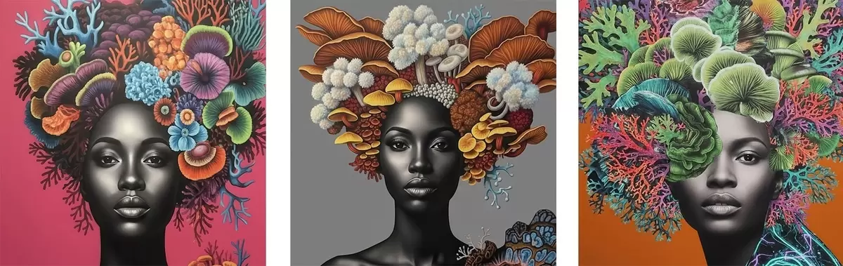Schilderij Psychedelisch portret van een vrouw met paddenstoelen Art. m01308