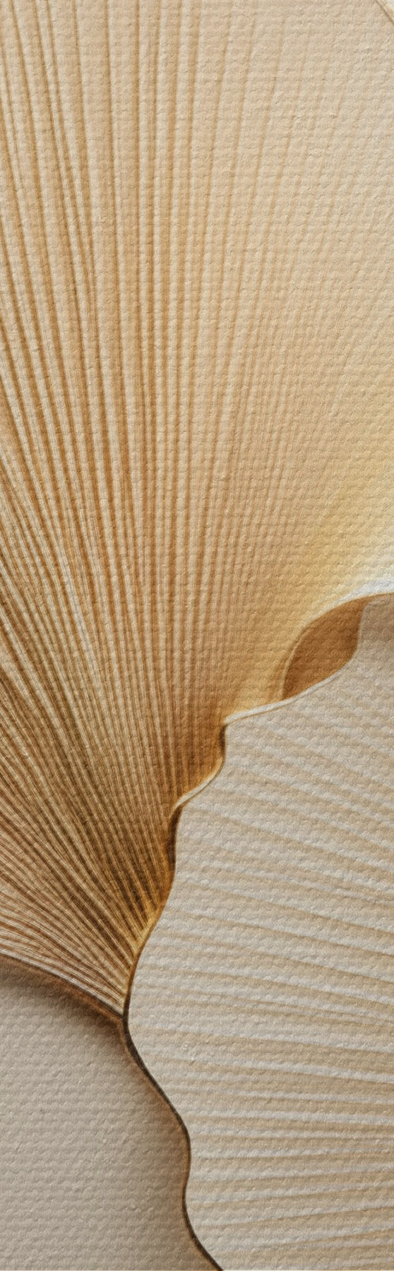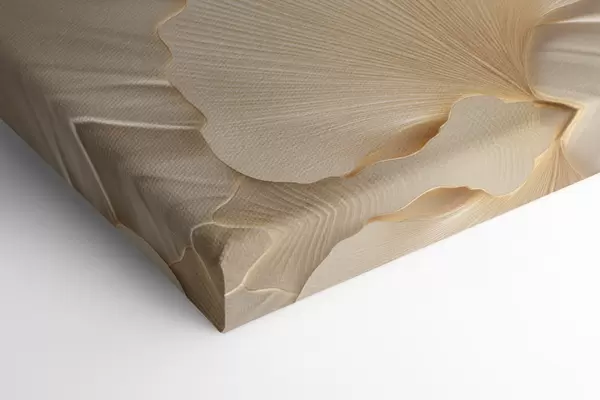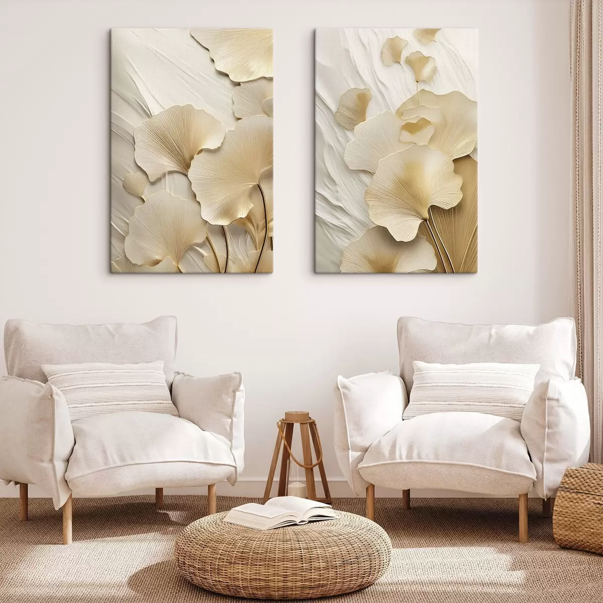 Schilderij Ginkgo-bladeren tegen een gestructureerde, lichte achtergrond, elegante en abstracte compositie Art. m30054