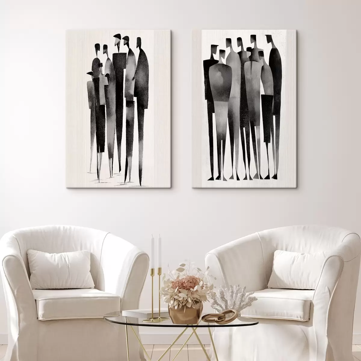 Schilderij Zwart-witte abstracte figuren Art. m30085