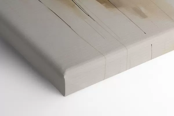 De fijne weving van draden op dit doek lijkt op het oppervlak van professionele schildersdoeken.