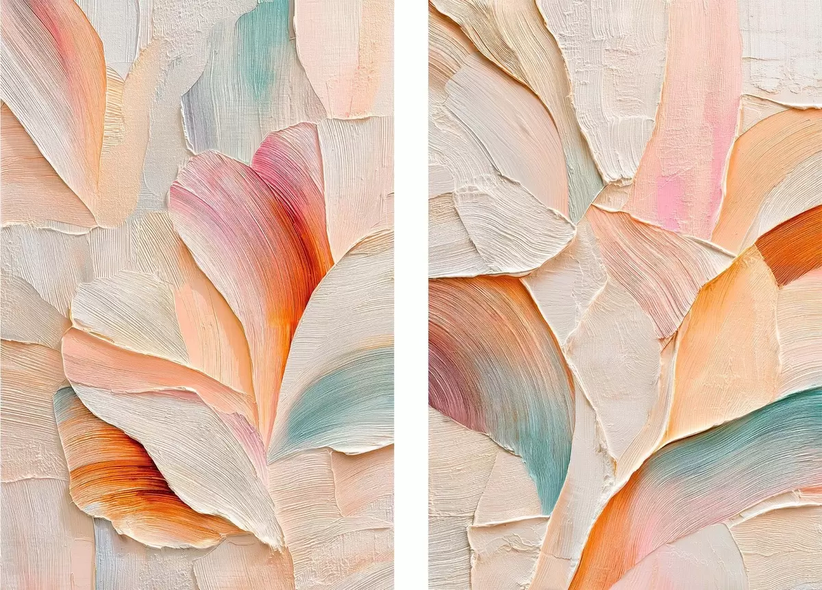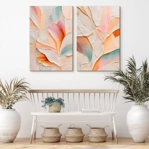 Schilderij Decoratieve bloemblaadjes met volumineuze penseelstreken in een eigentijdse kunststijl Art. m30139