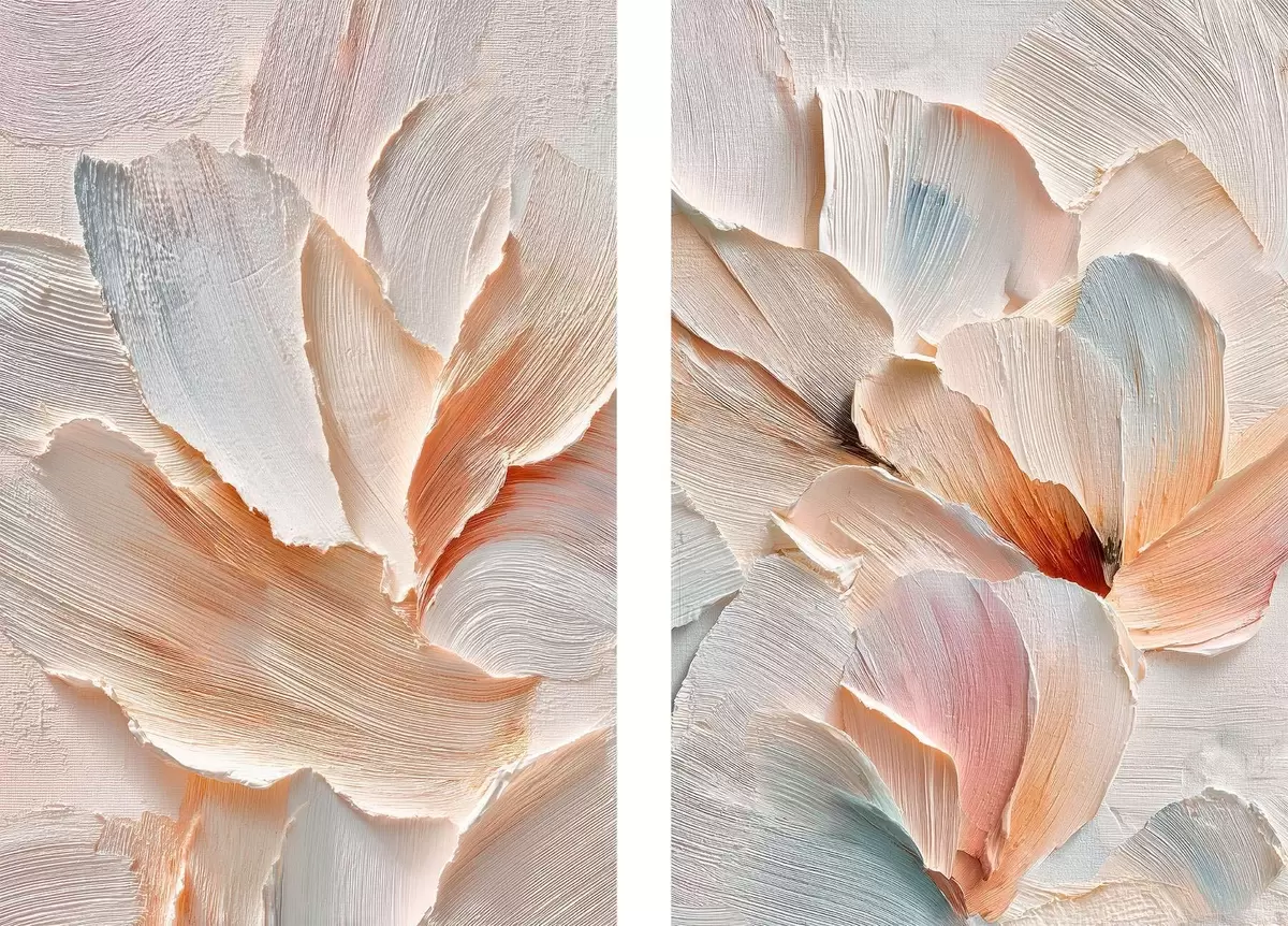 Schilderijen Abstracte bloemcompositie in pasteltinten in de stijl van een olieverfschilderij m30145