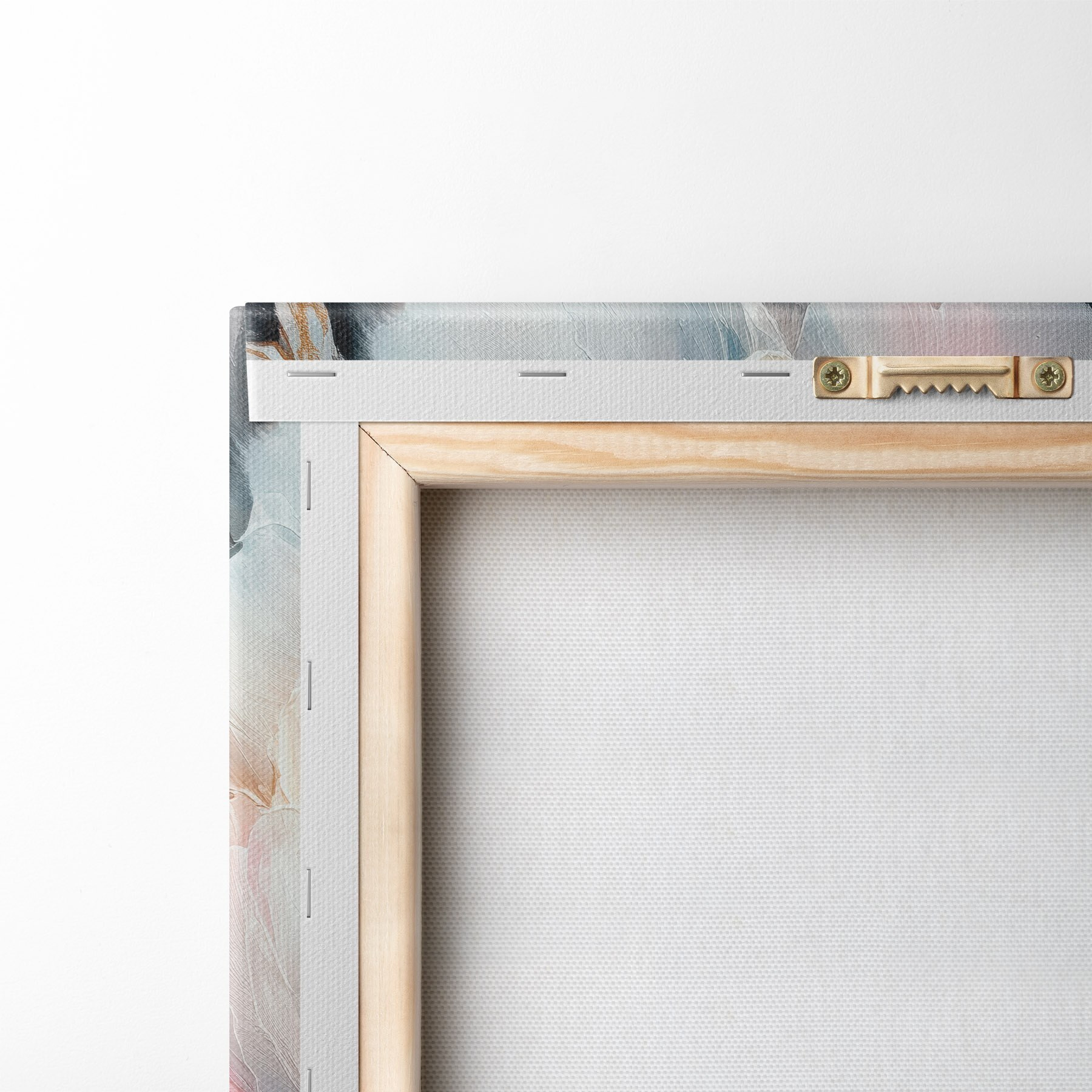 Om het doek op te spannen op spielatten zonder de afbeelding te beschadigen, gebruiken we gespiegeld beeld.