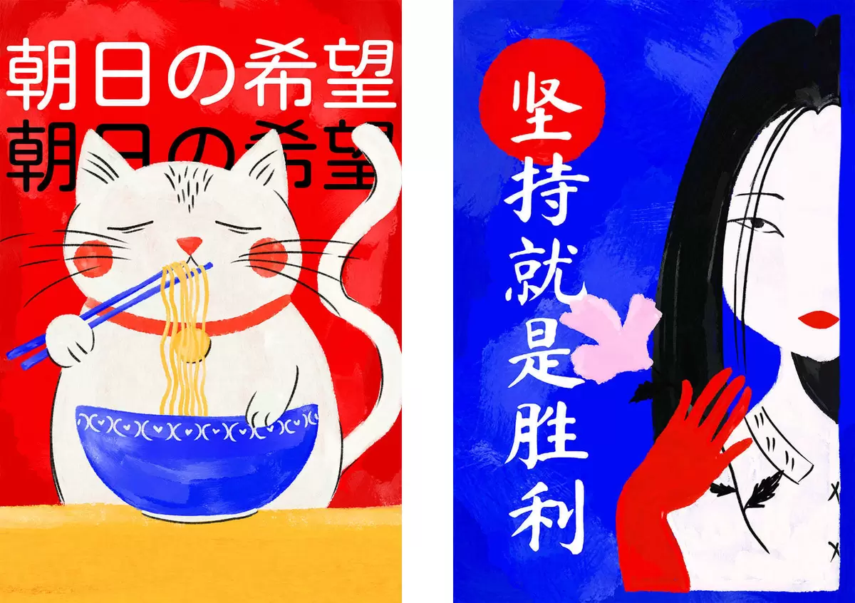 Schilderijen Tweeluik met een kat en een vrouwenportret in een gedurfde stijl m30233