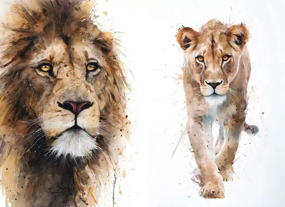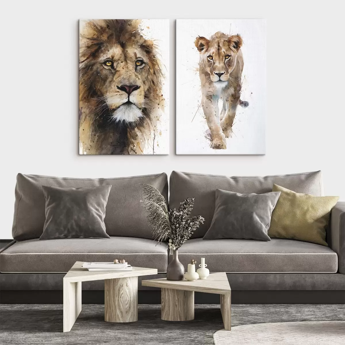 Schilderijen een mannetjesleeuw en een vrouwtjesleeuw m30259