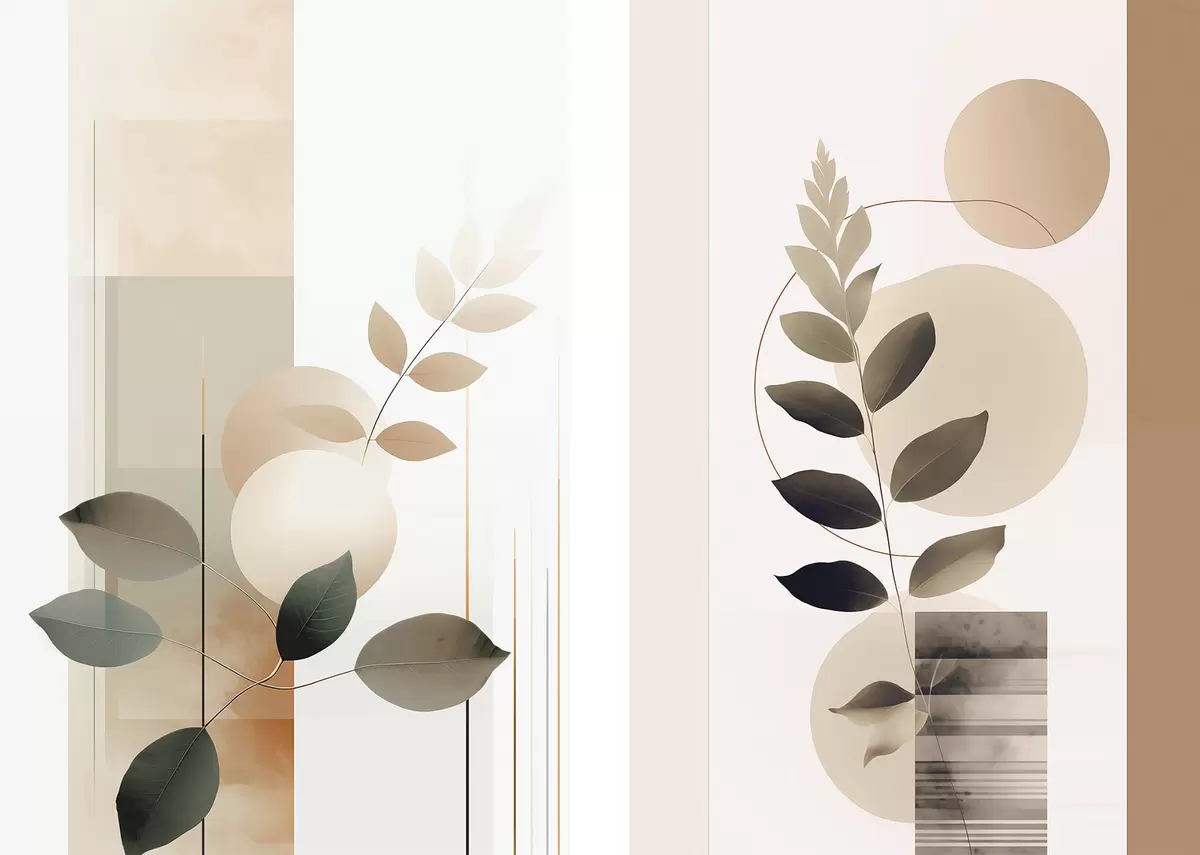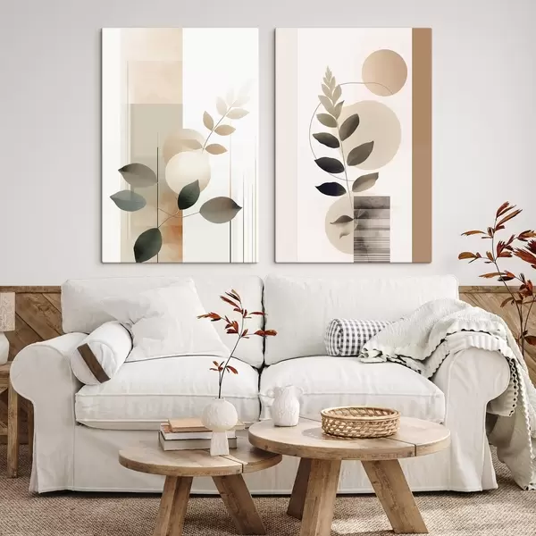 Schilderij Abstracte botanische bladeren met verschillende vormen Art. m30291