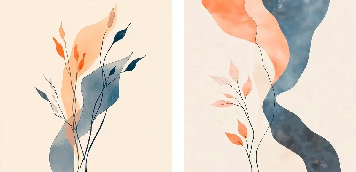 Schilderij Decoratieve takken met fijne lijnen in een eigentijdse schilderstijl Art. m30346