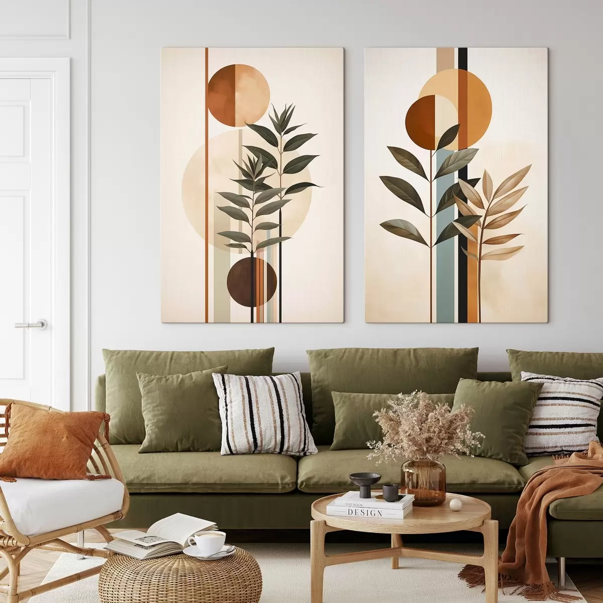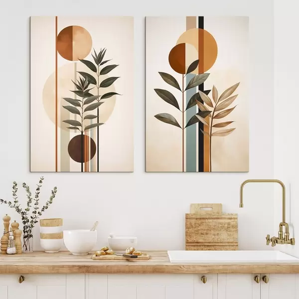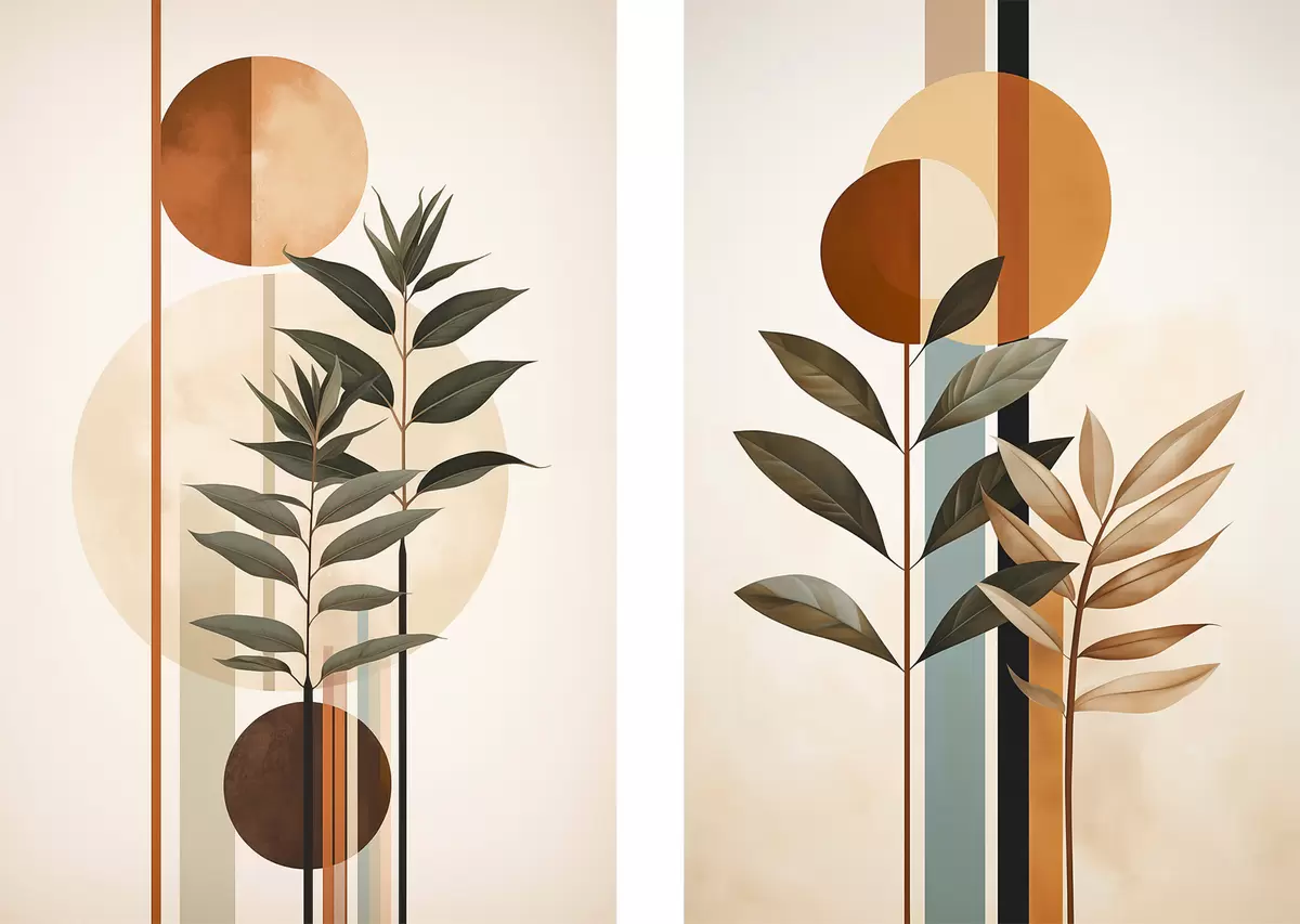Schilderijen Abstracte planten met cirkels en lijnen m30392