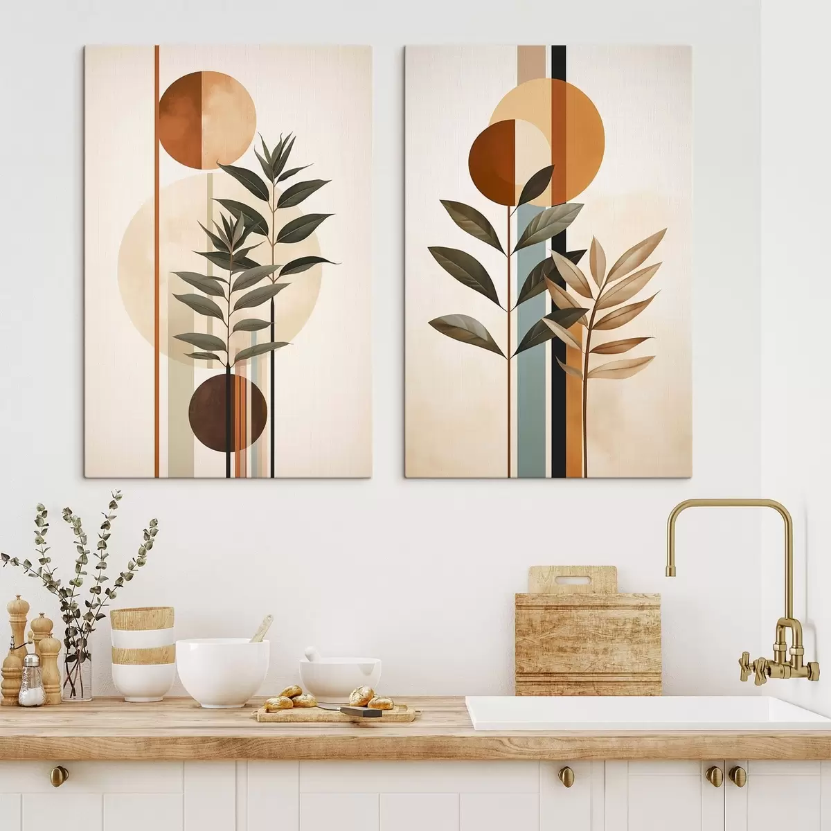 Schilderij Abstracte planten met cirkels en lijnen Art. m30392