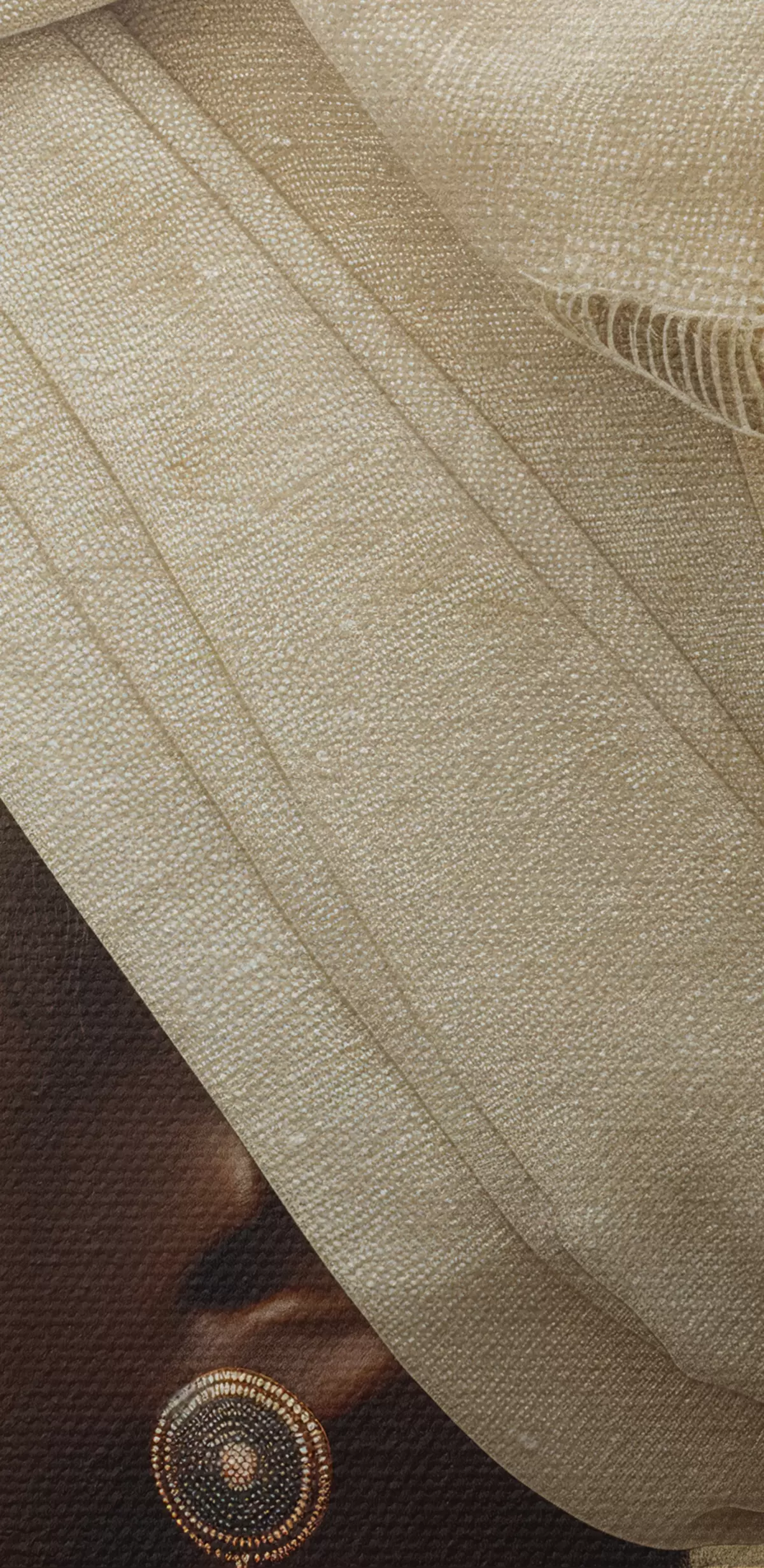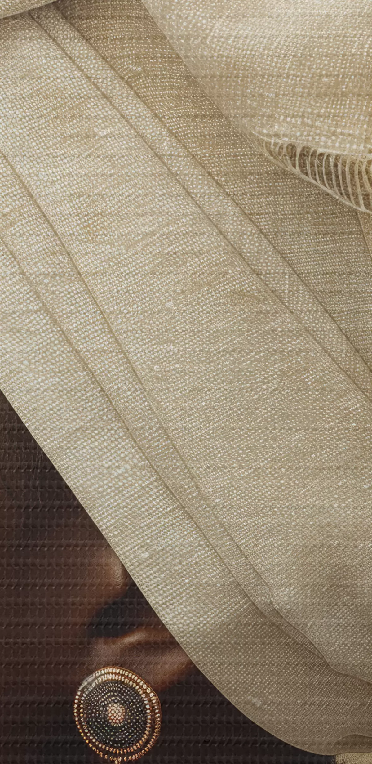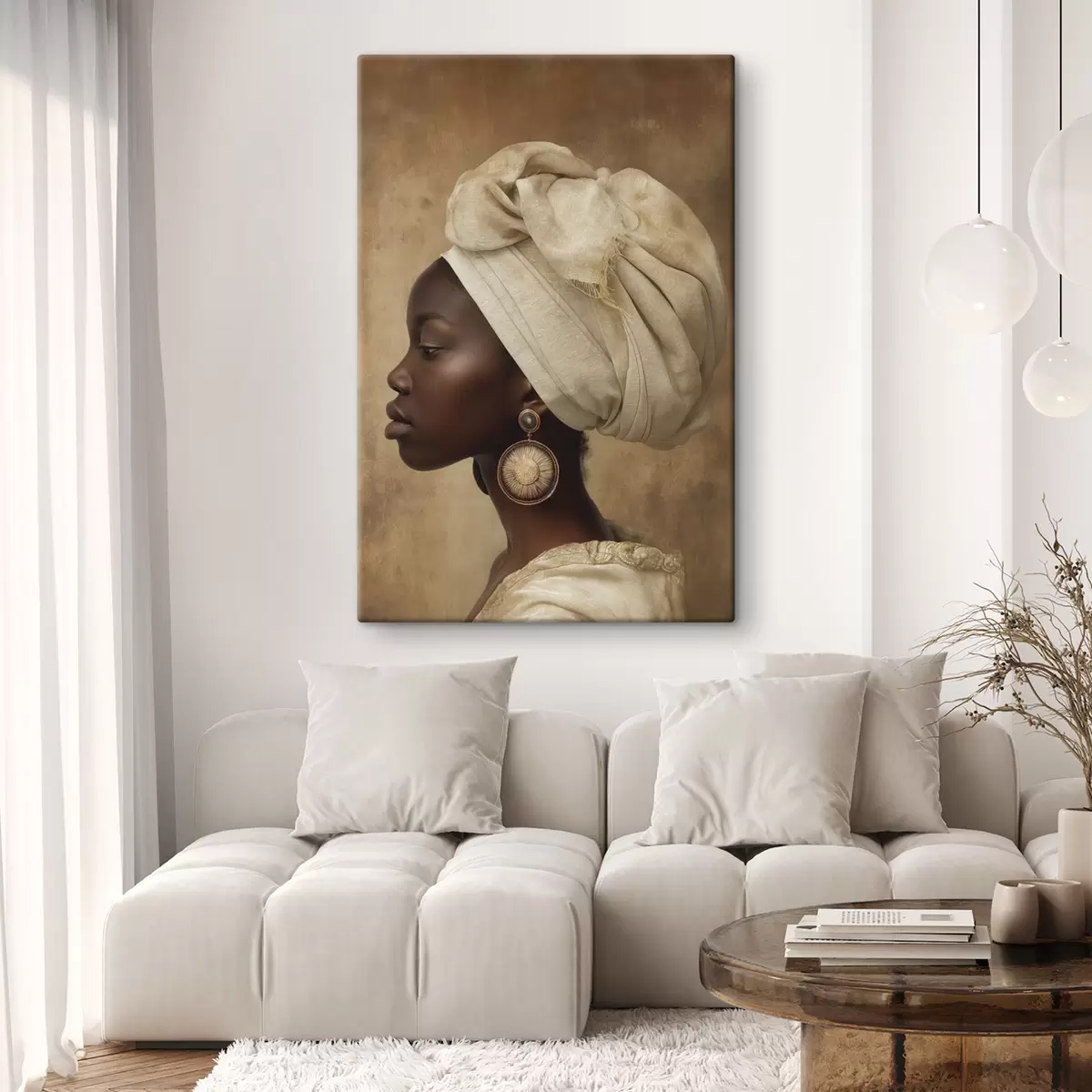Schilderij beige portret van een vrouw in Afrikaanse stijl in profiel met grote oorbellen Art. s26120