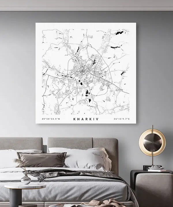 Schilderij Minimalistische kaart van de stad Kharkov, Oekraïne Art. s31429v1