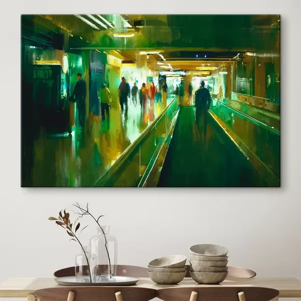 Schilderij Een groep mensen op een roltrap Art. s37103