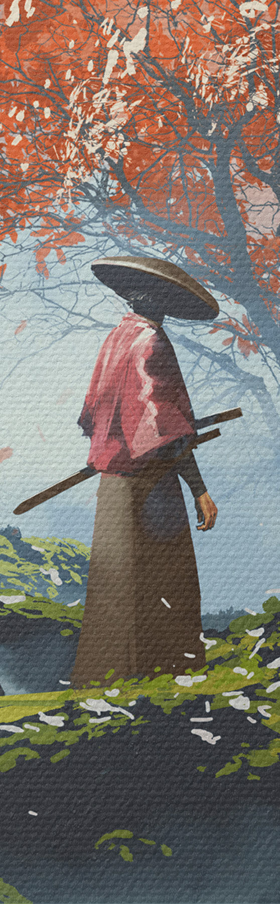 Schilderijen Krijger in een serene, levendige omgeving s37105