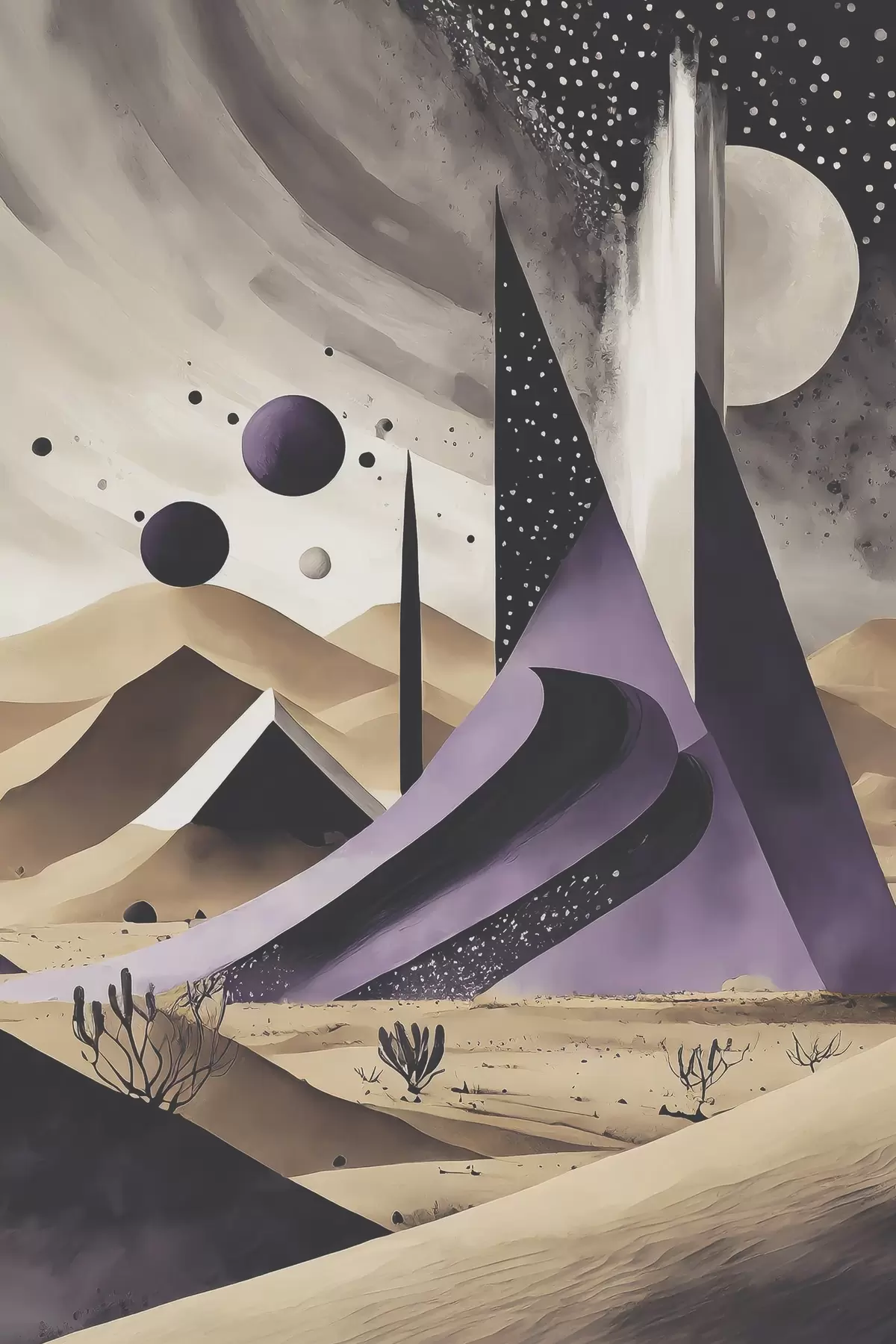 Schilderij Een paars en wit woestijnlandschap Art. s37359
