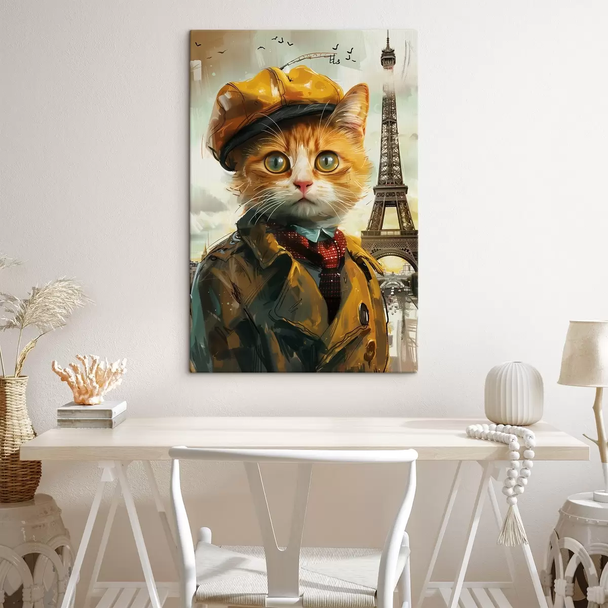 Schilderij Charmante kat in Parijse kleding Art. s37456