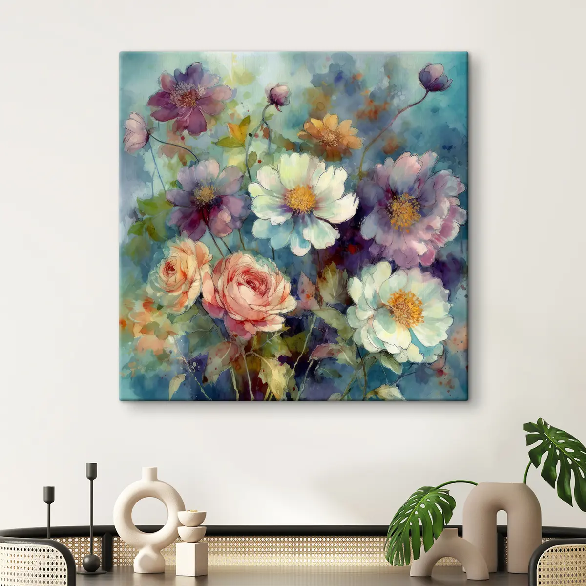 Schilderij Kleurrijke bloeiende bloemen in zachte tinten Art. s37540
