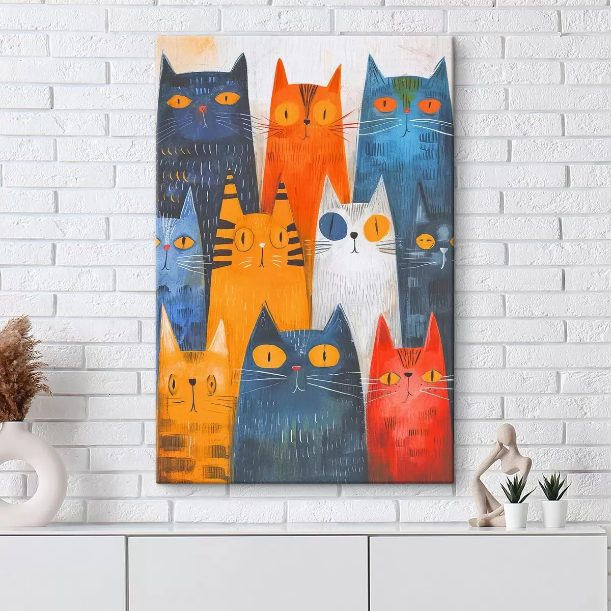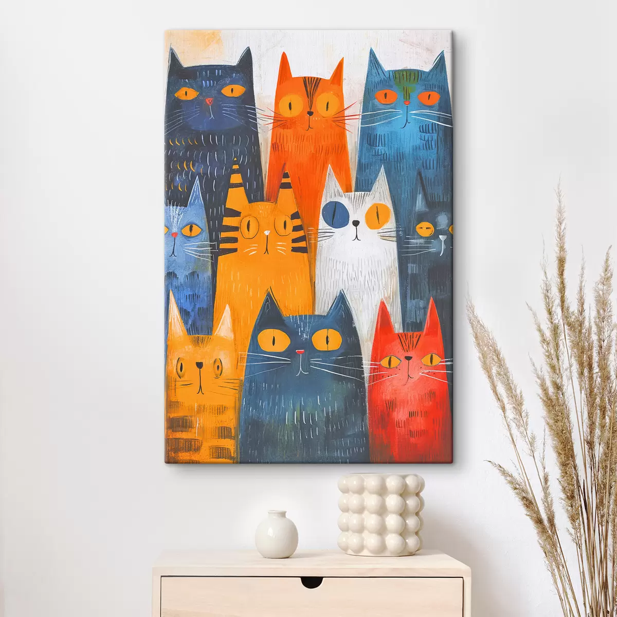 Schilderij Kleurrijke katten in een speelse bijeenkomst Art. s37559