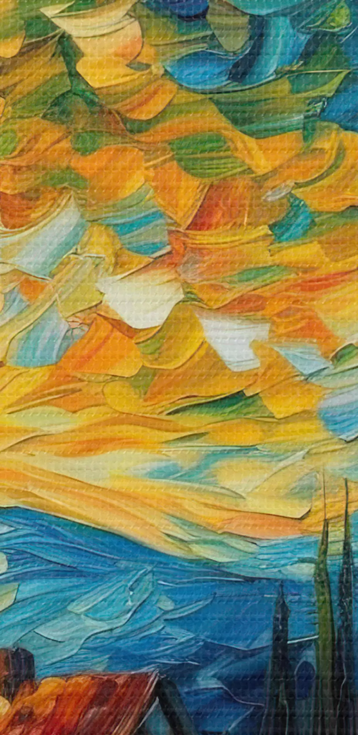 Er zijn drie soorten materiaal te bestellen: Economic Canvas - een dicht en duurzaam materiaal voor digitaal printen, identiek aan schildersdoek, waterdicht oppervlak, realistische weergave van details, materiaal met gemiddelde korrel. Premium Canvas - de textuur lijkt op die van schildersdoek (verweven kleine draden). Zachte, gedetailleerde reproductie van de afbeelding op een mat oppervlak. Eco-Premium - hoogwaardige 100% katoenen stof. Dankzij de natuurlijke katoenvezels is het materiaal duurzaam en slijtvast. Uitstekende kleurweergave en detail.