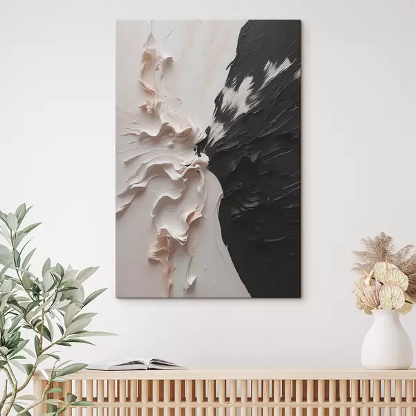 Schilderij Abstract olieverfschilderij in witte en zwarte kleuren Art. s38300
