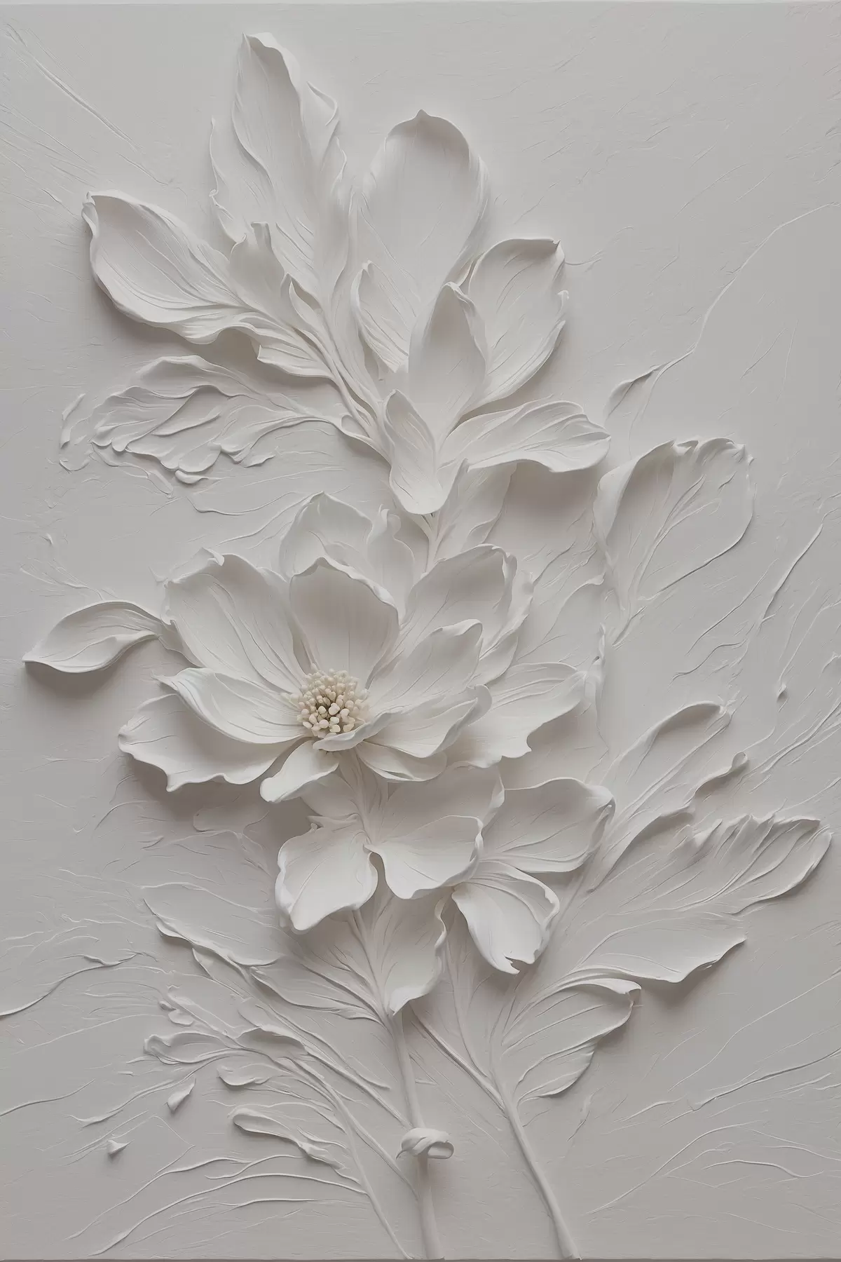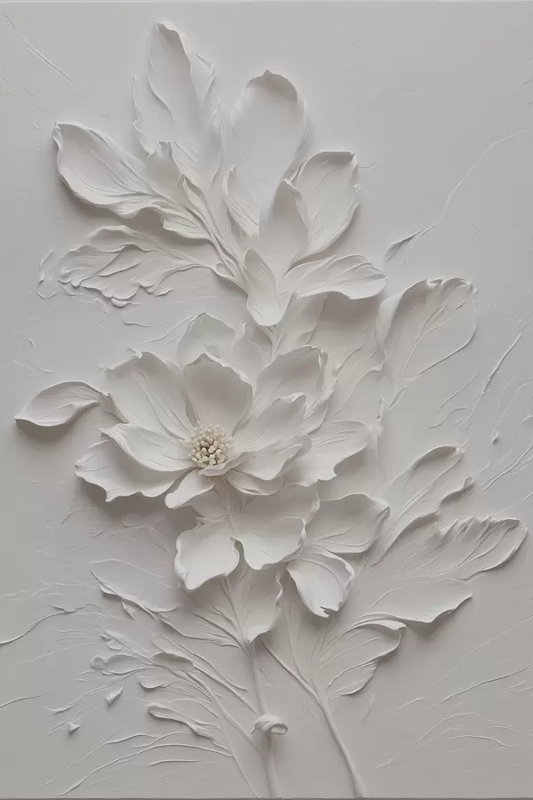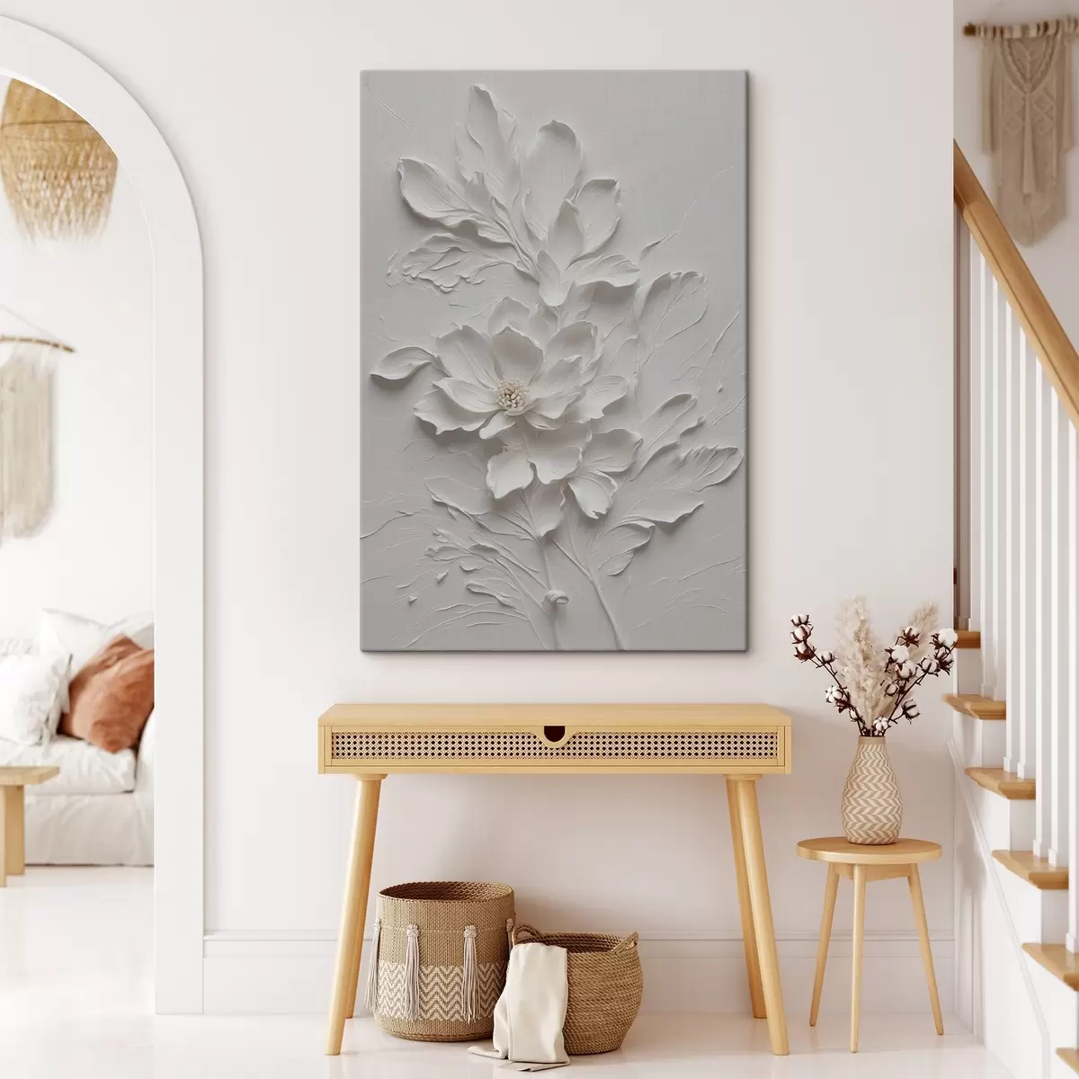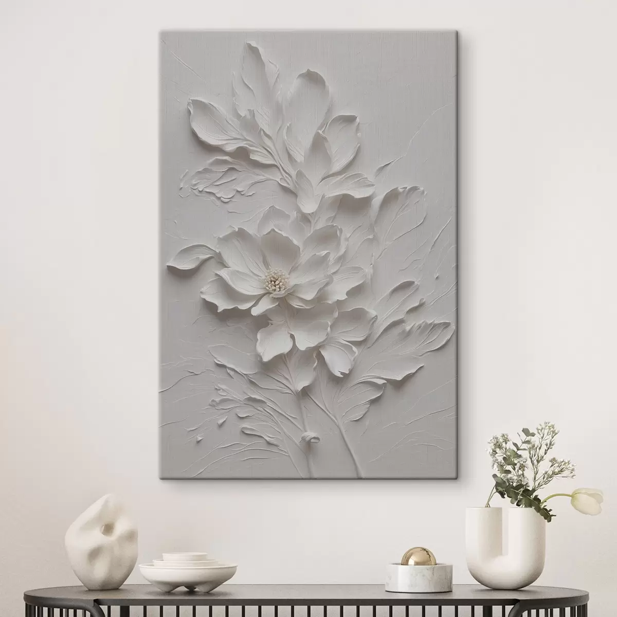Schilderij Witte bloem op witte achtergrond in olie Art. s38305