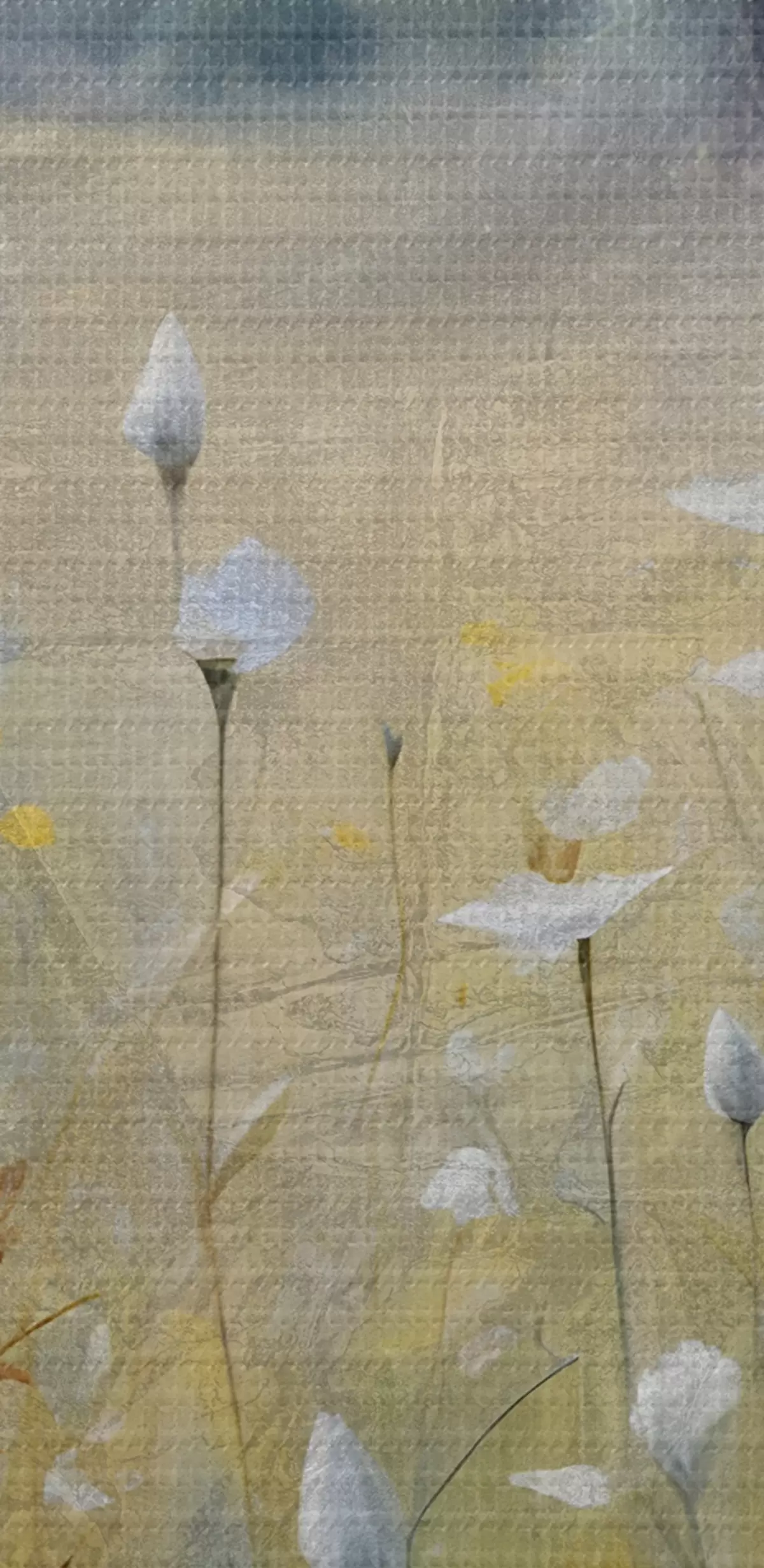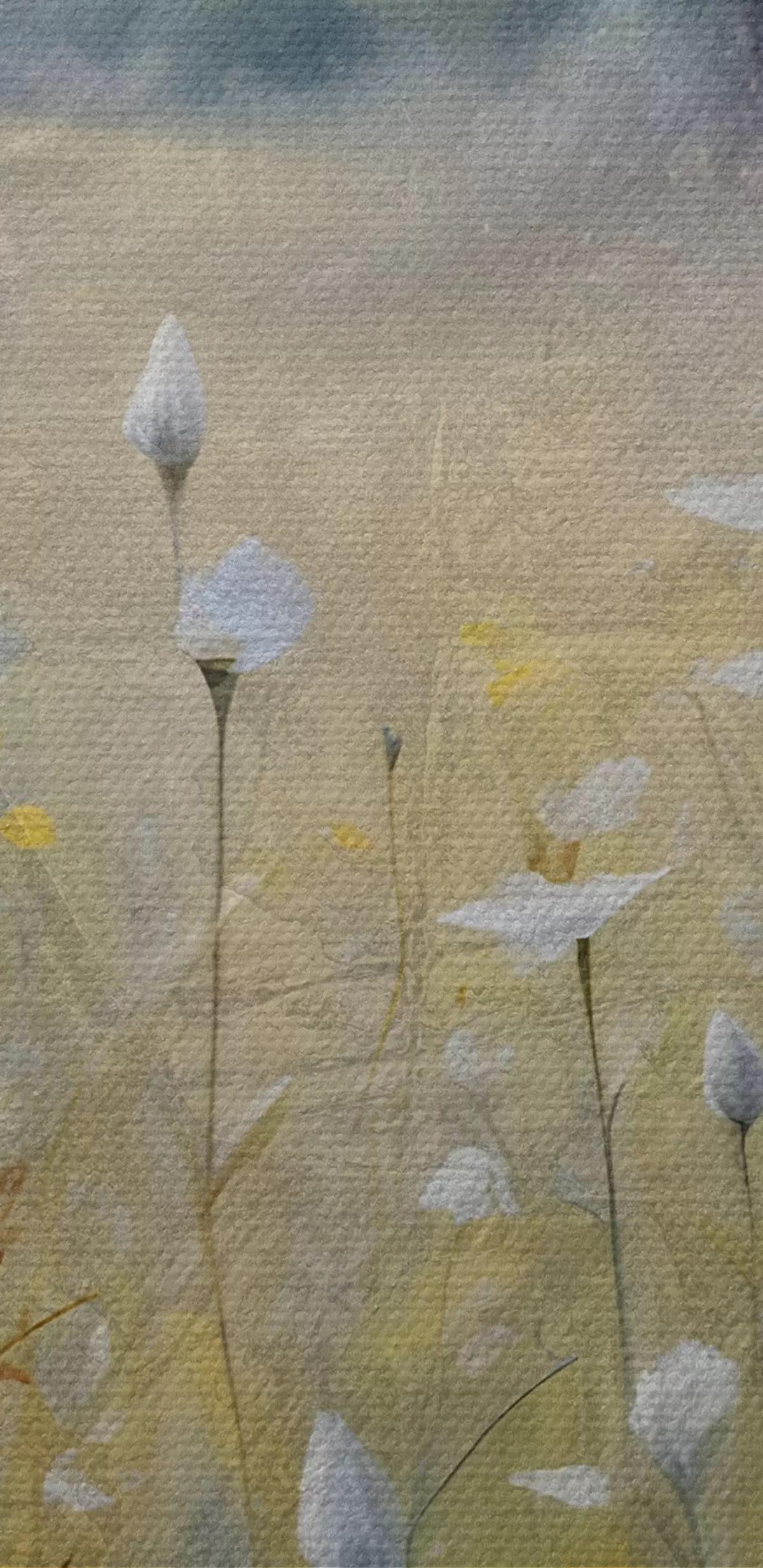 De fijne weving van draden op dit doek lijkt op het oppervlak van professionele schildersdoeken.