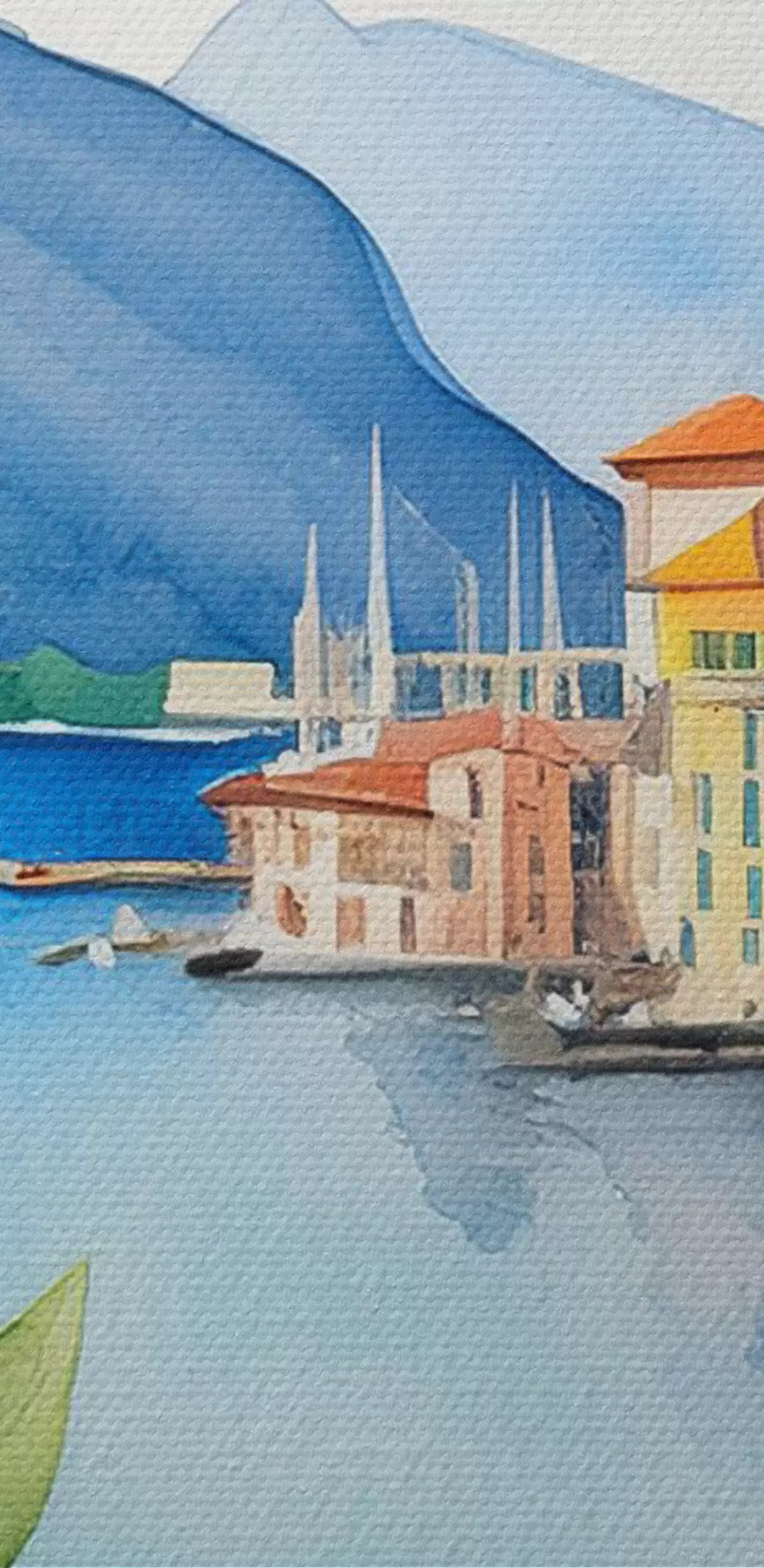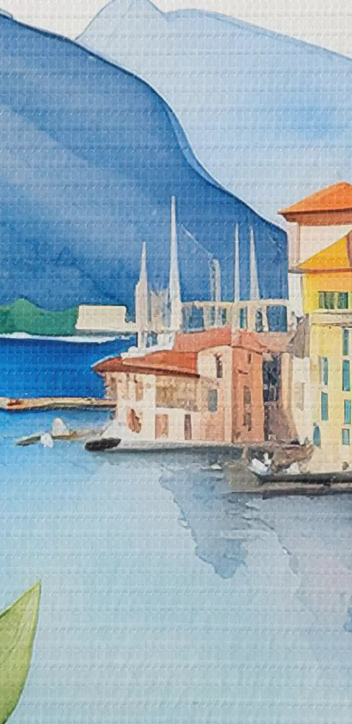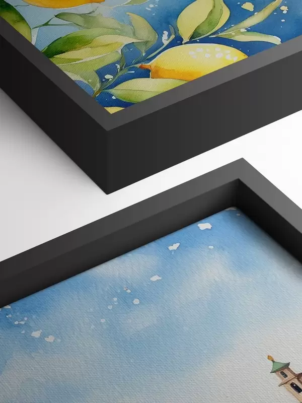 Schilderijen Italiaans meer, zomer, aquarel, natuurlandschap, citroenen, stadsarchitectuur s38397