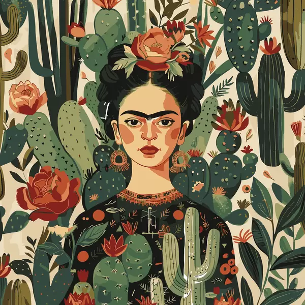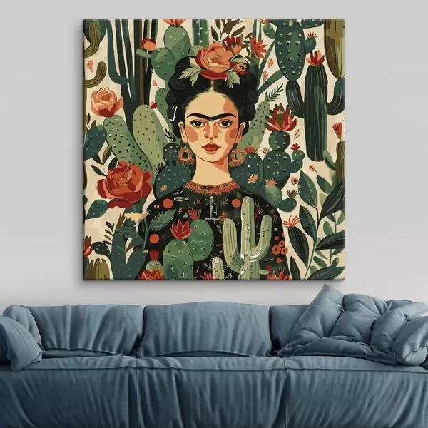 Schilderij Groene stijl Frida in cactussen Art. s38415