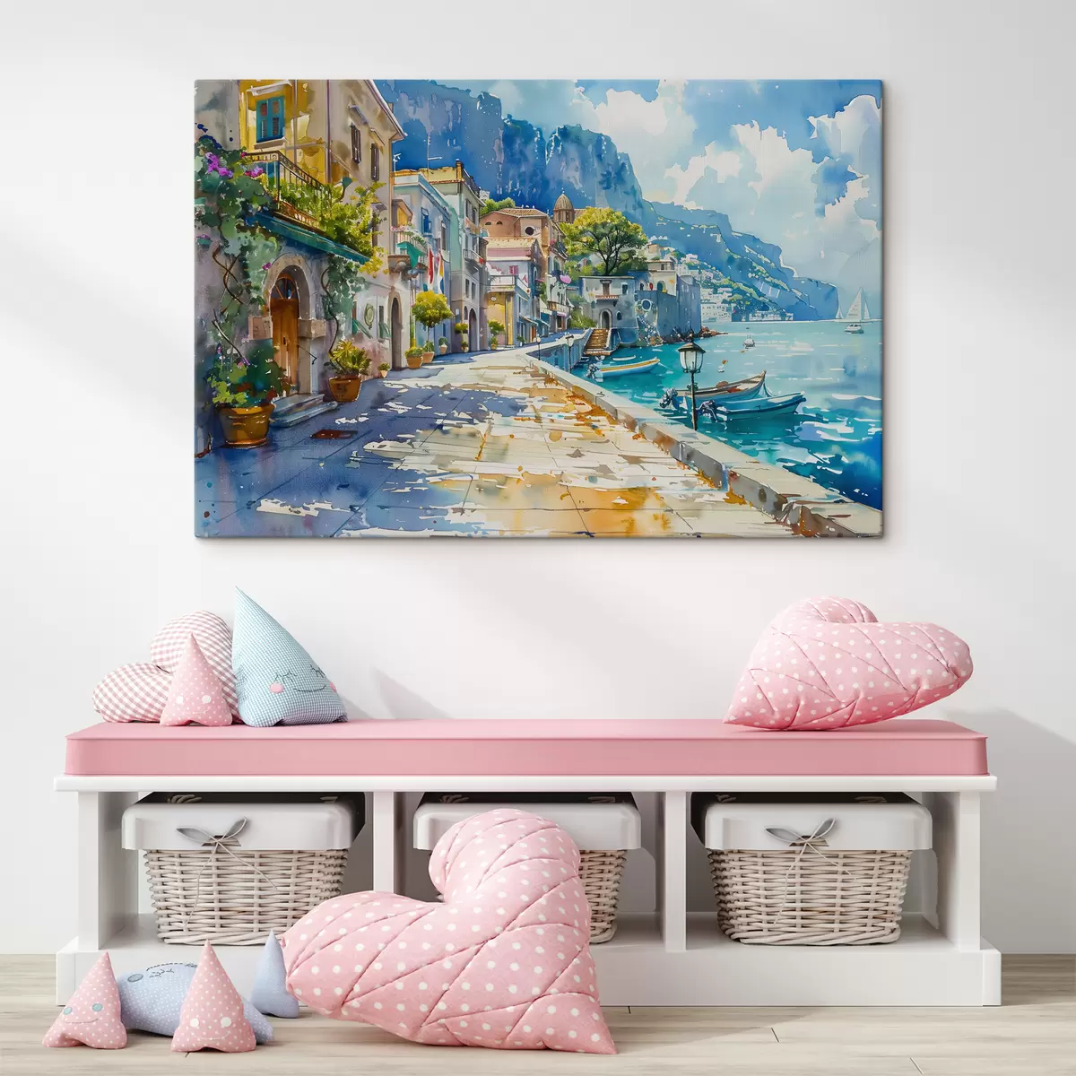 Je kunt het schilderij ophangen aan schroeven. Hiervoor leveren we bevestigingen bij onze foto's, zodat je de foto gemakkelijk kunt ophangen.
