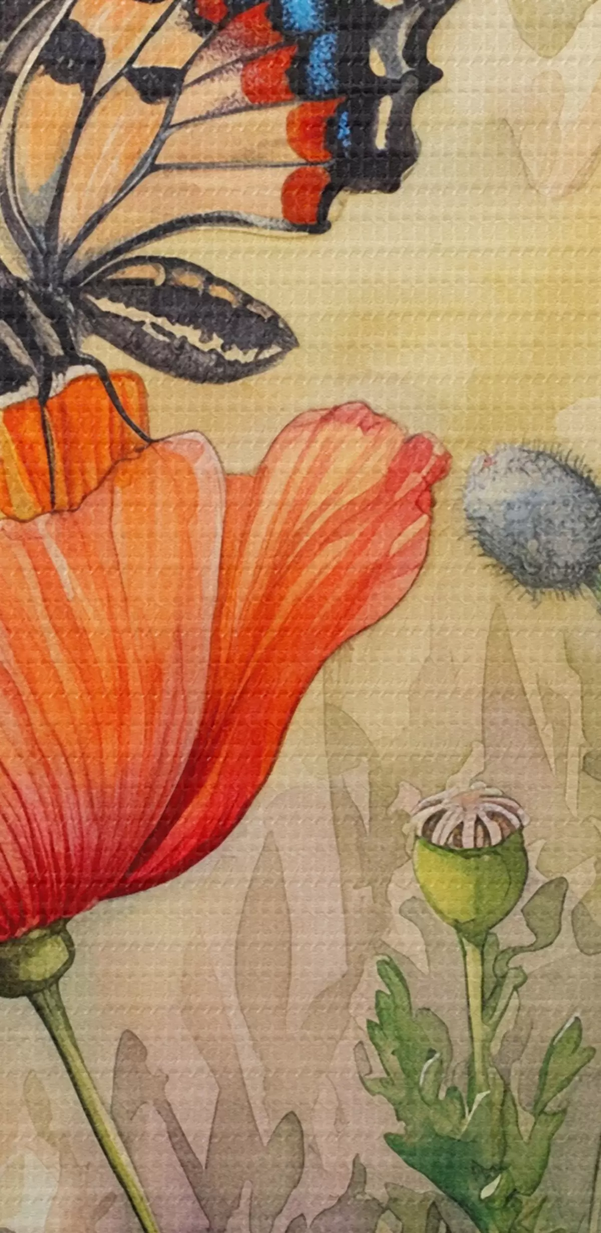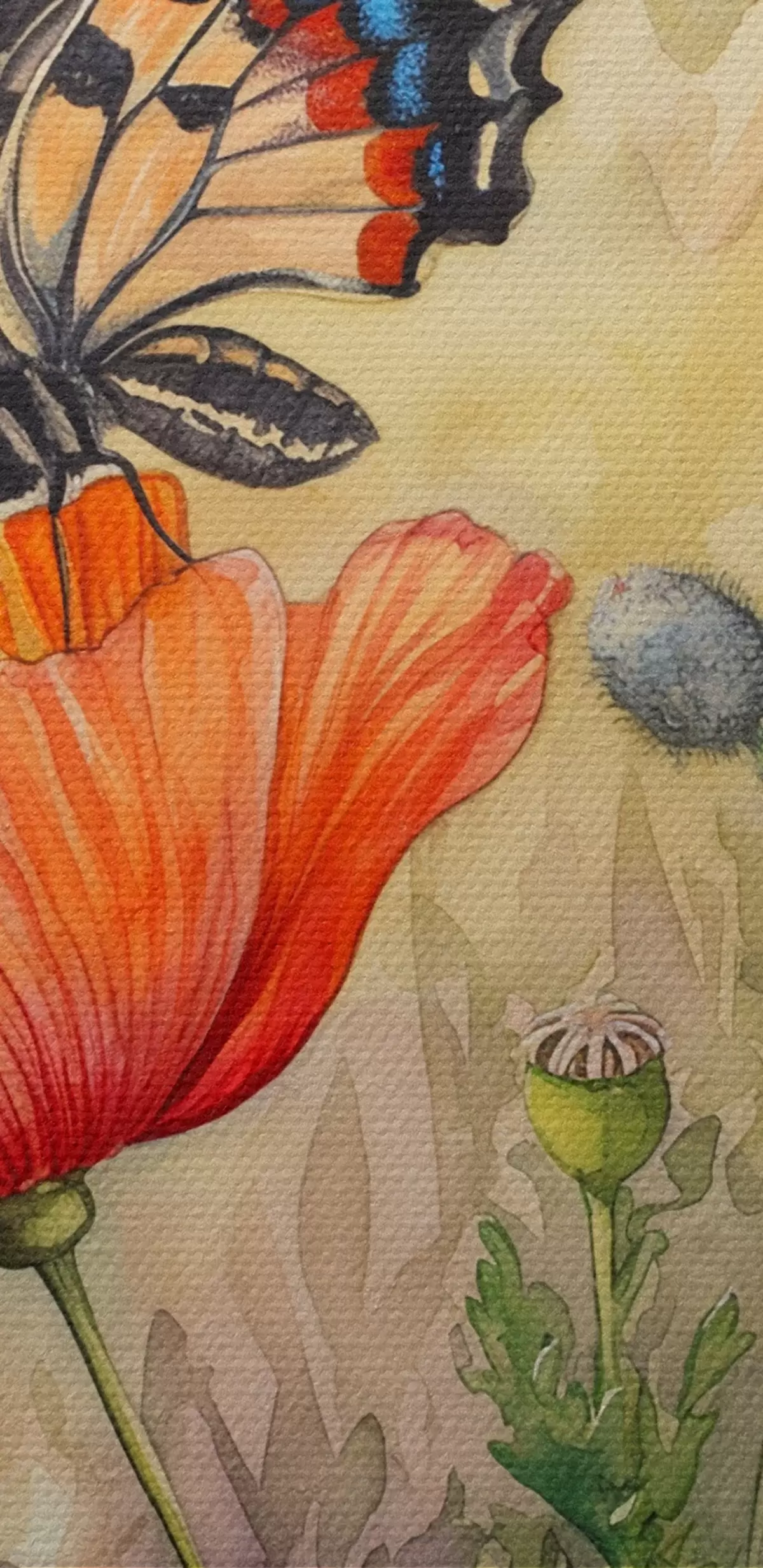 Schilderij Veld van klaprozen en vlinder Art. s38520