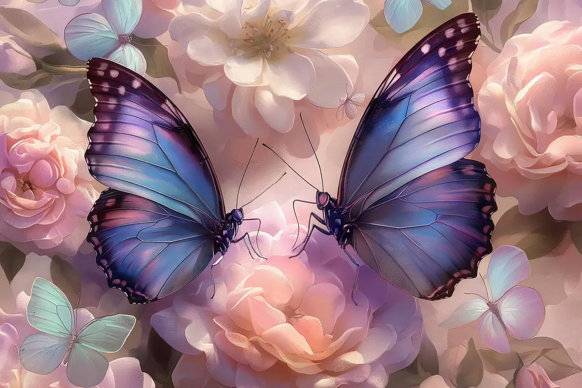 Schilderij Twee vlinders in bloemen in aquarelstijl Art. s38534