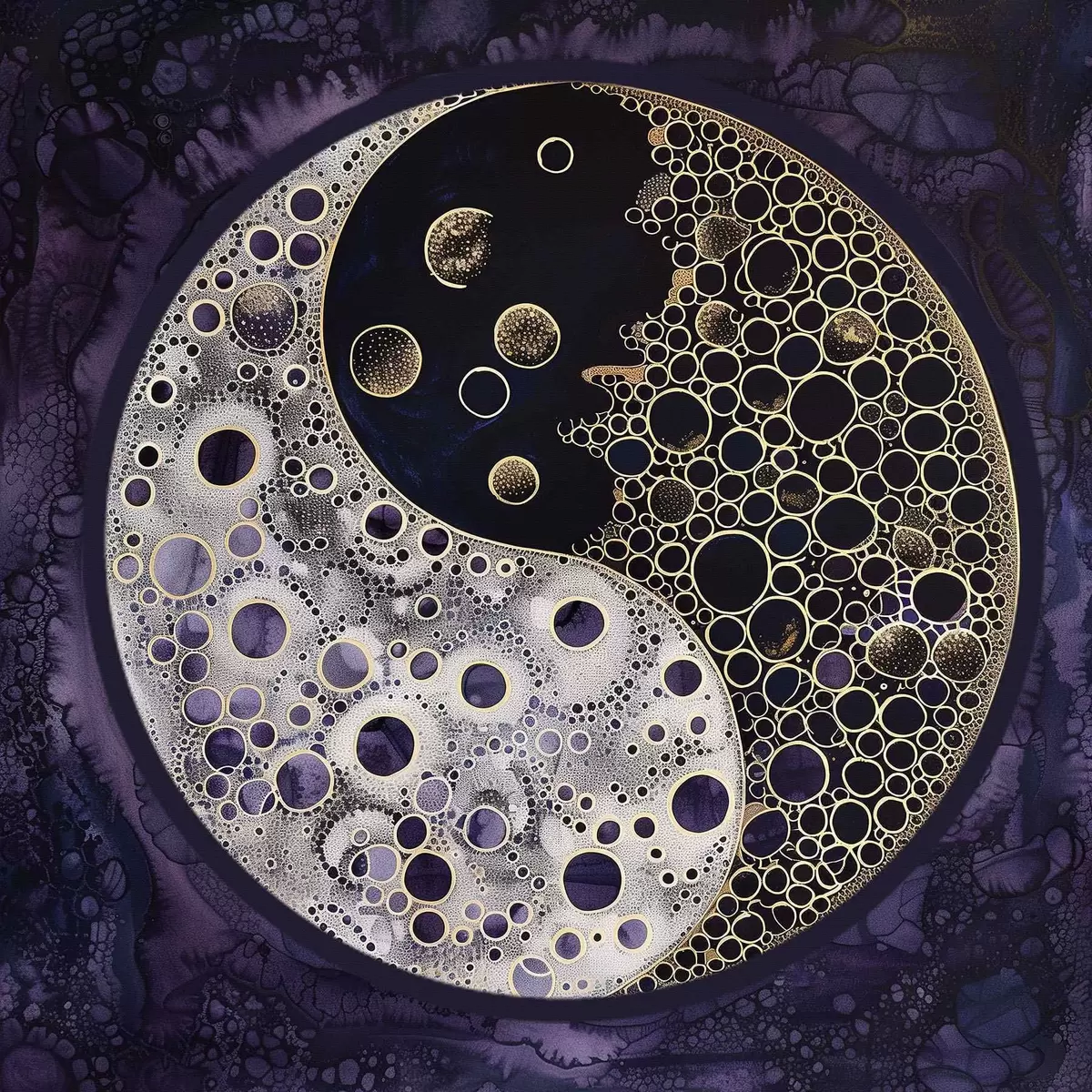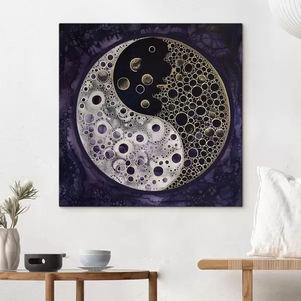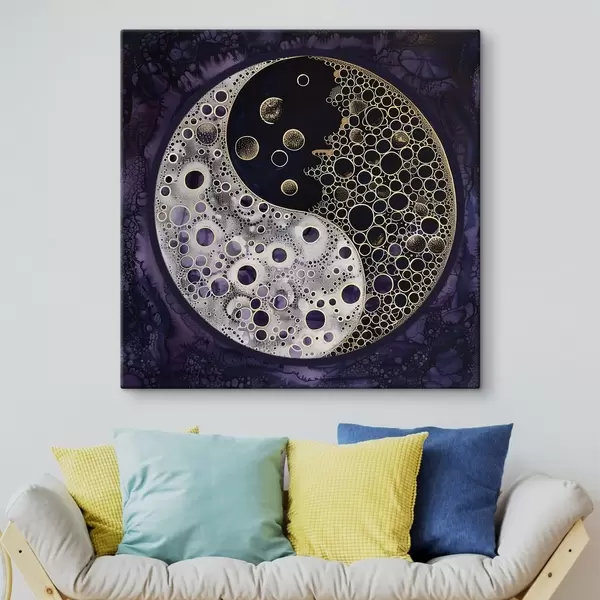 Schilderij Yin en yang symbool op paarse achtergrond Art. s38535