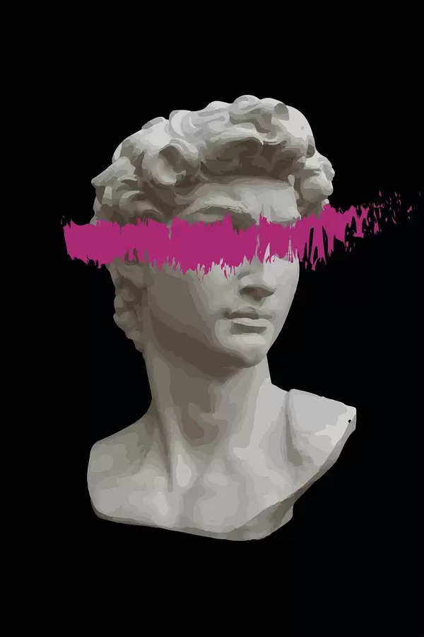 Schilderij Een standbeeld van een man met een roze streep Art. s38560