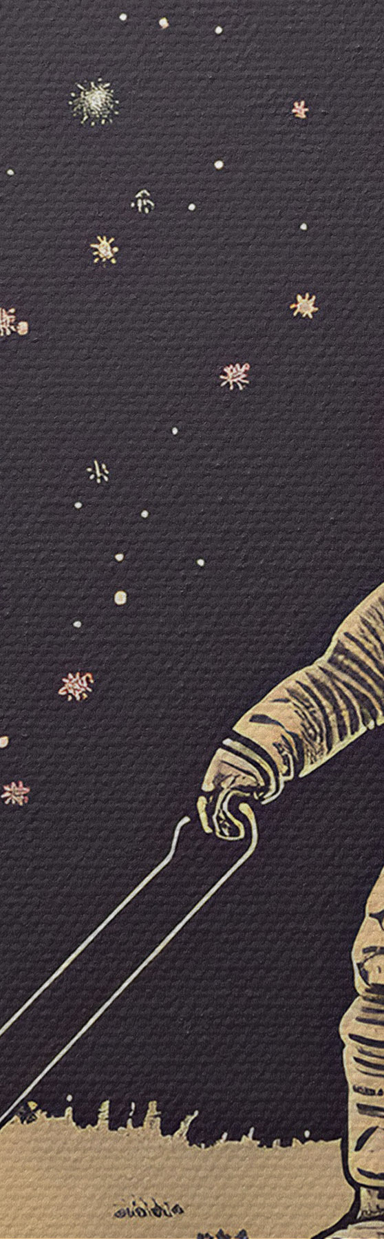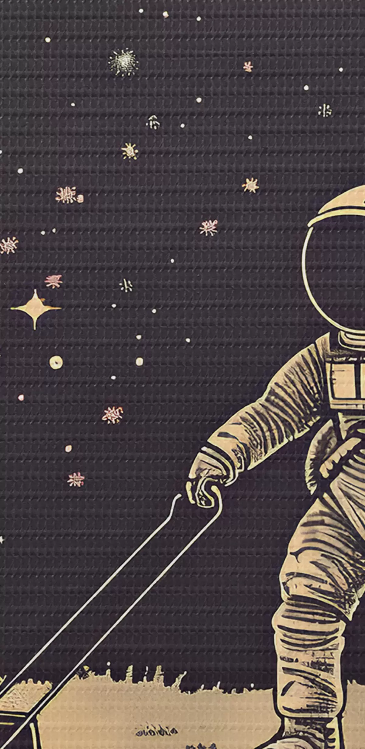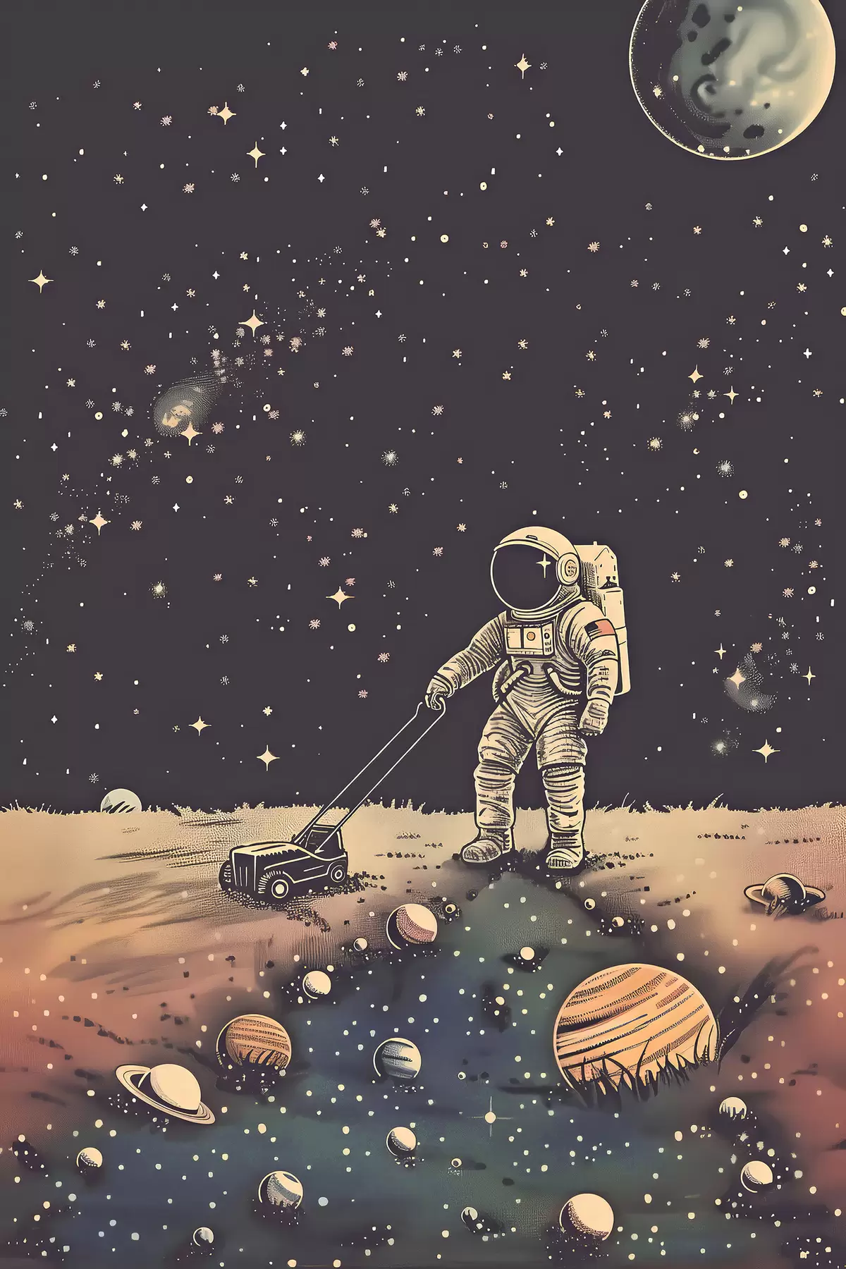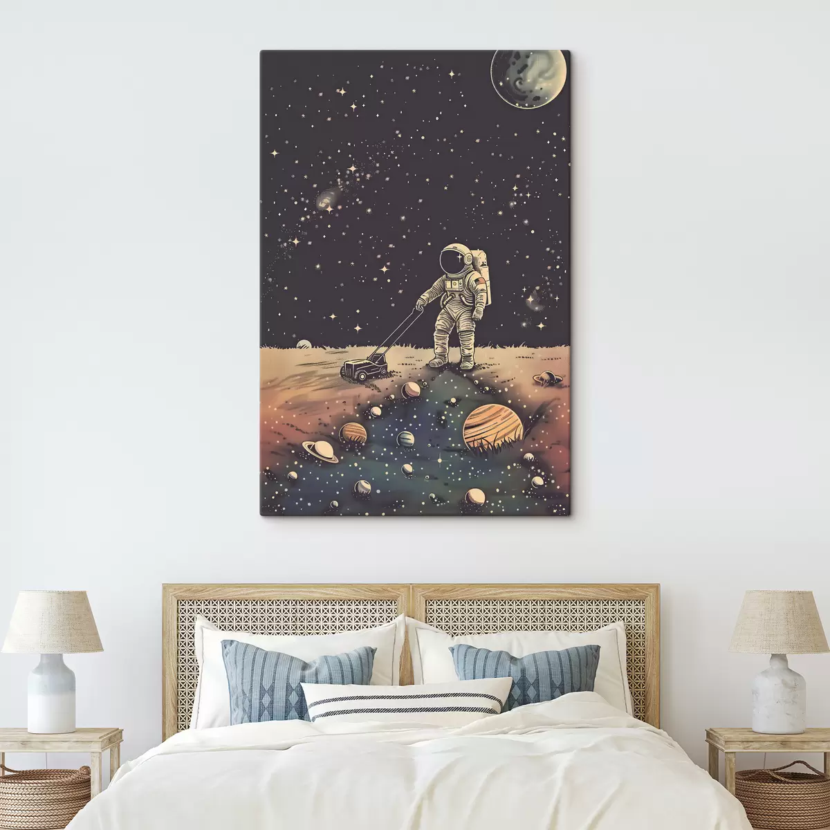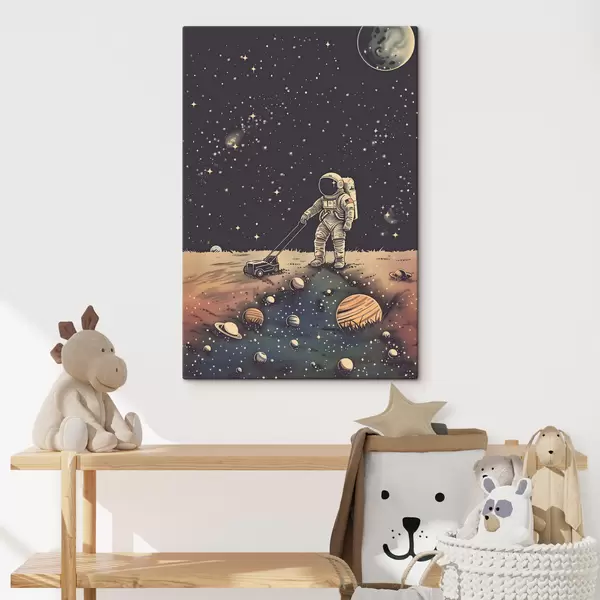 Schilderij Astronaut met grasmaaier in de ruimte Art. s38637