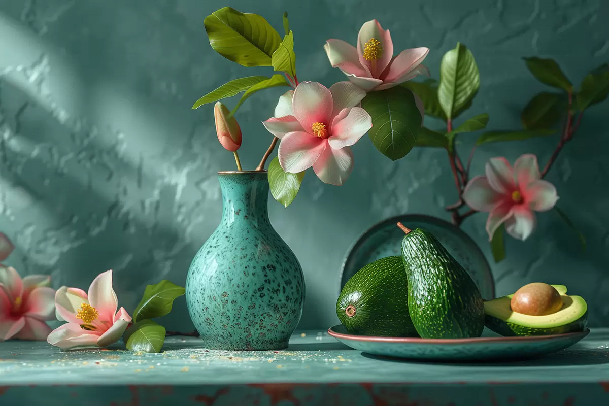 Schilderij Samenstelling van avocado en lelie Art. s38687