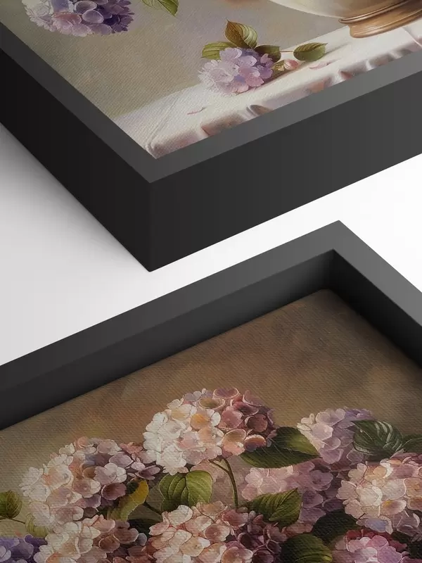 Schilderij Fijne hortensia's op tafel Art. s38710