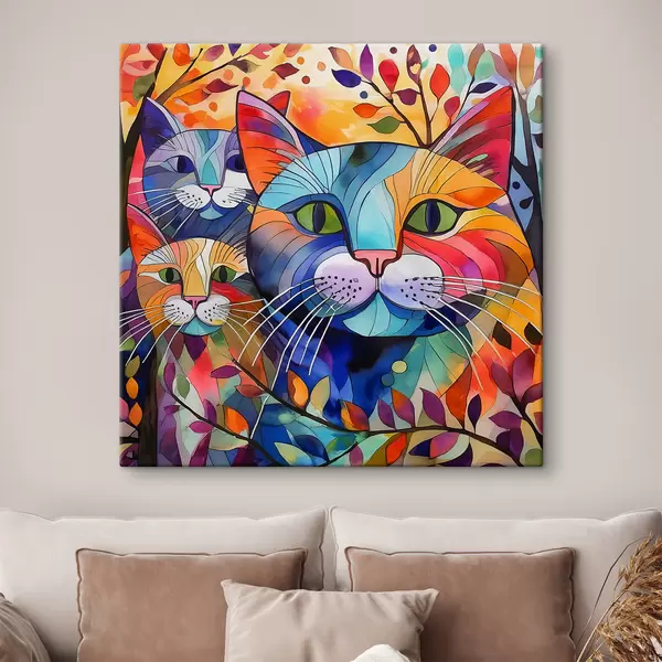 Schilderij Veelkleurige abstractie met katten Art. s38814