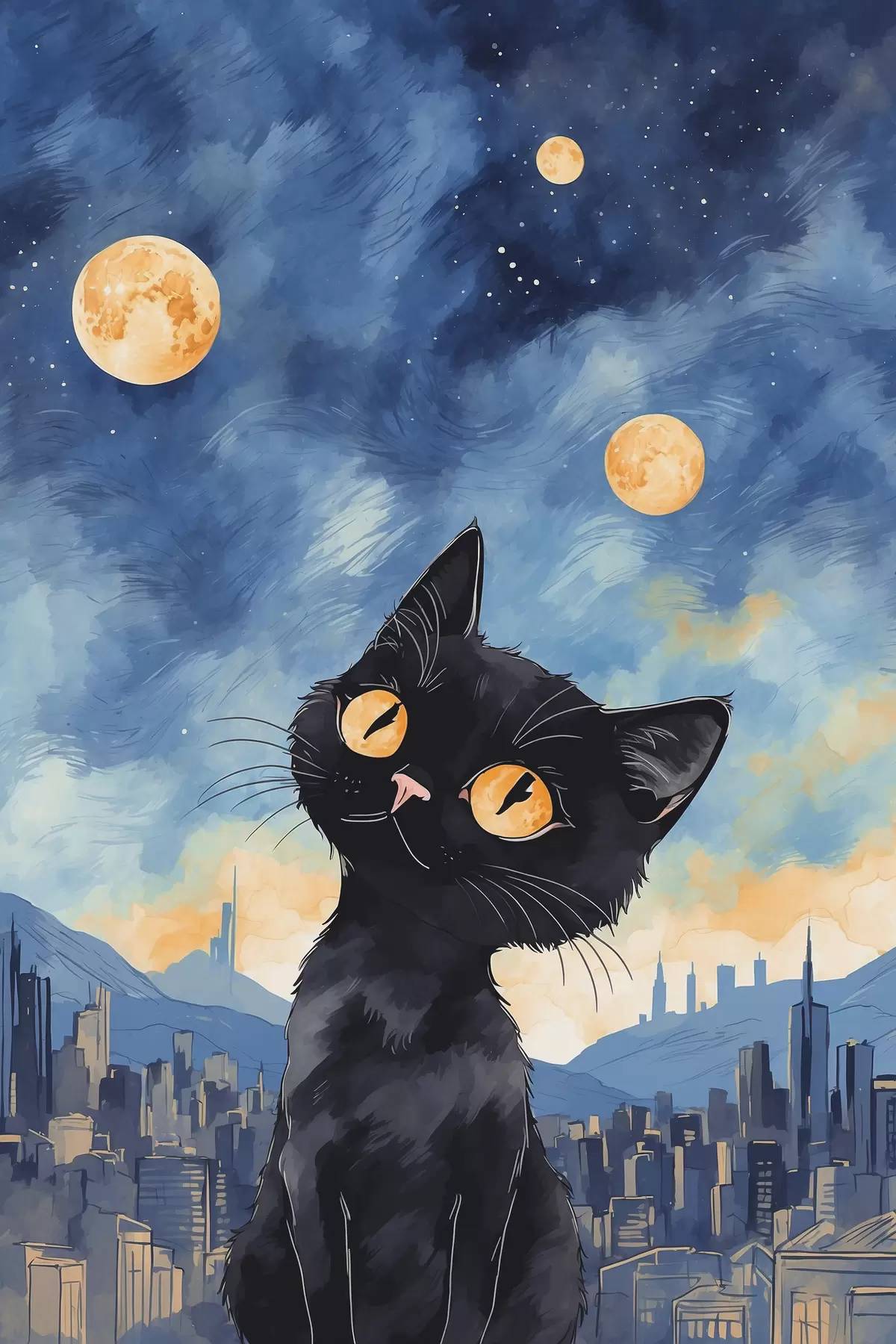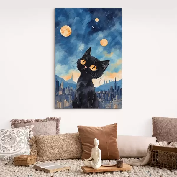 Schilderij Kat op de achtergrond van een stad Art. s38861