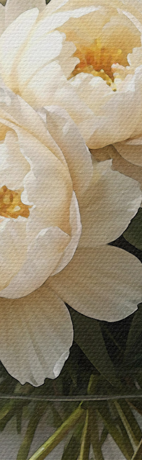 Er zijn drie soorten materiaal te bestellen: Economic Canvas - een dicht en duurzaam materiaal voor digitaal printen, identiek aan schildersdoek, waterdicht oppervlak, realistische weergave van details, materiaal met gemiddelde korrel. Premium Canvas - de textuur lijkt op die van schildersdoek (verweven kleine draden). Zachte, gedetailleerde reproductie van de afbeelding op een mat oppervlak. Eco-Premium - hoogwaardige 100% katoenen stof. Dankzij de natuurlijke katoenvezels is het materiaal duurzaam en slijtvast. Uitstekende kleurweergave en detail.