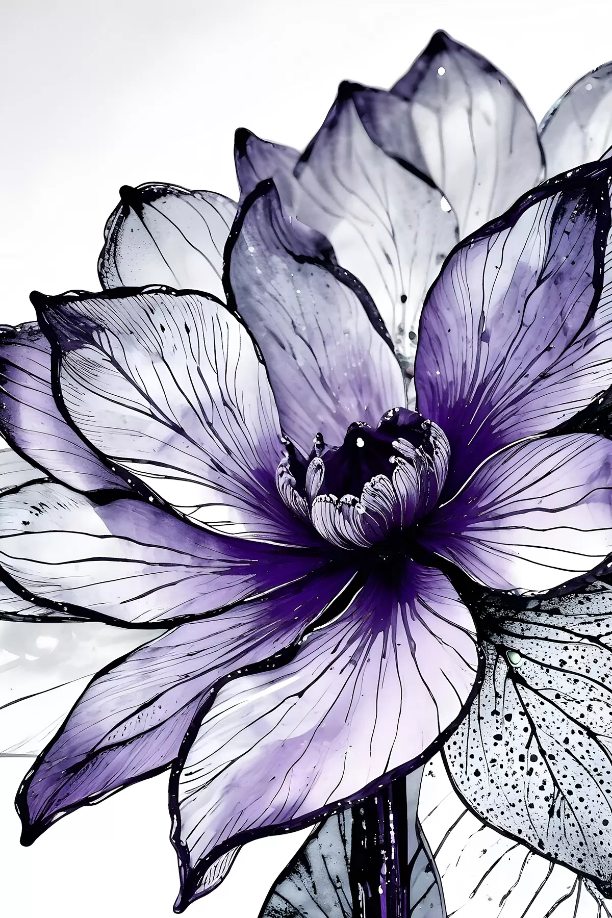 Schilderij Een grote, levendige paarse bloem met delicate, ingewikkelde bloemblaadjes tegen een donkere achtergrond Art. s38982