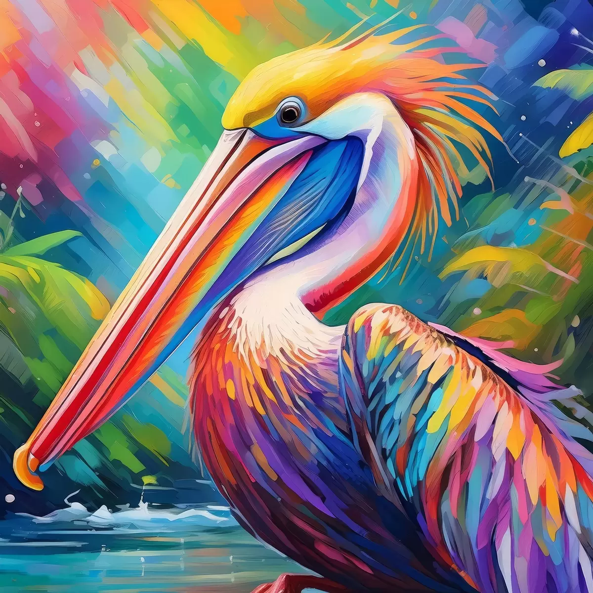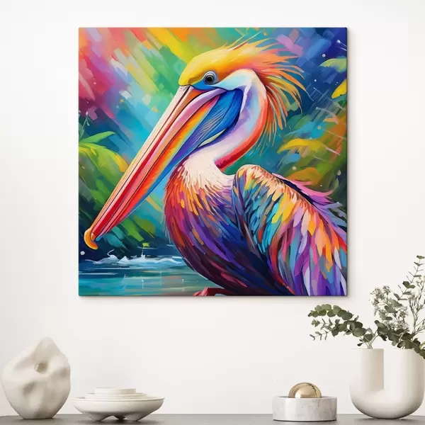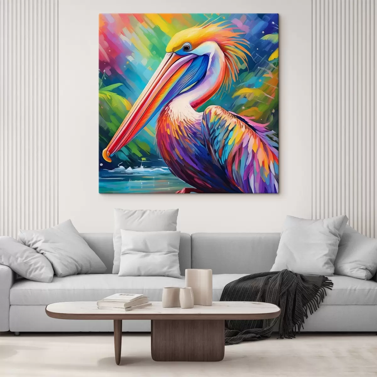 Schilderij Levendige pelikaan tegen kleurrijke achtergrond Art. s39054
