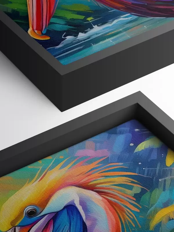 Schilderijen Levendige pelikaan tegen kleurrijke achtergrond s39054